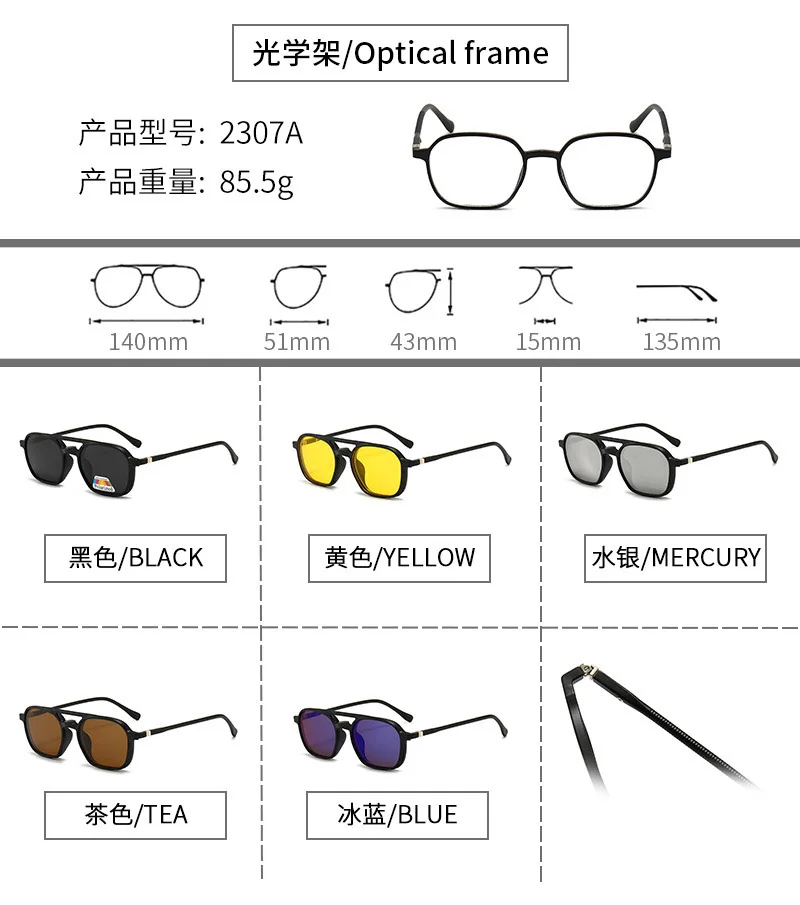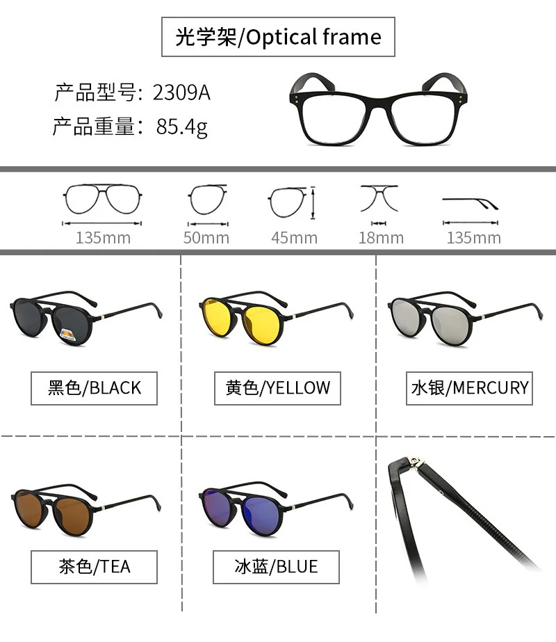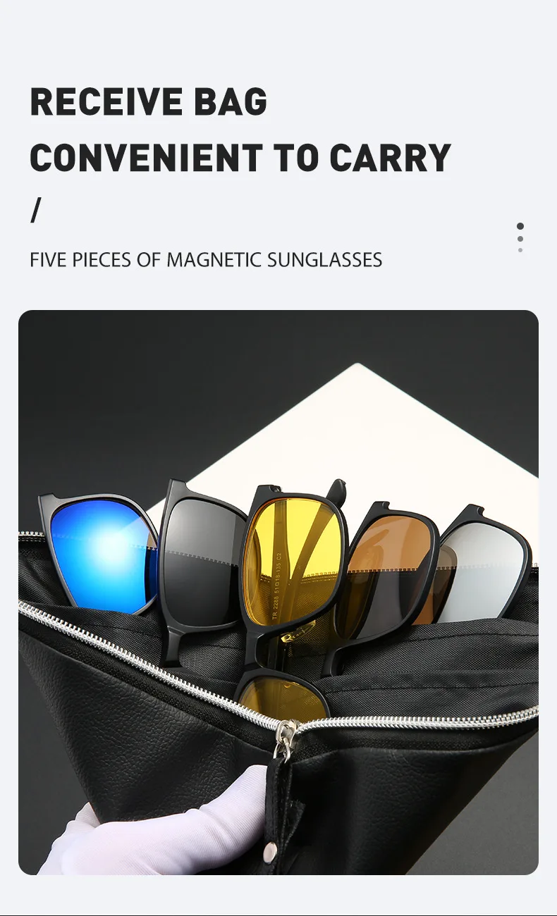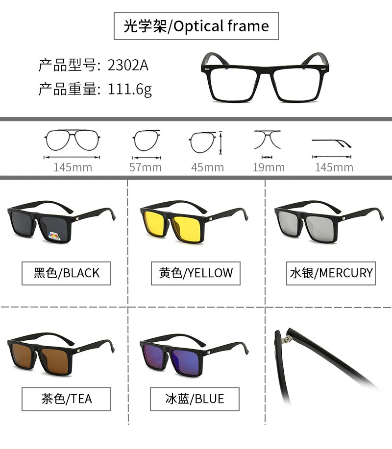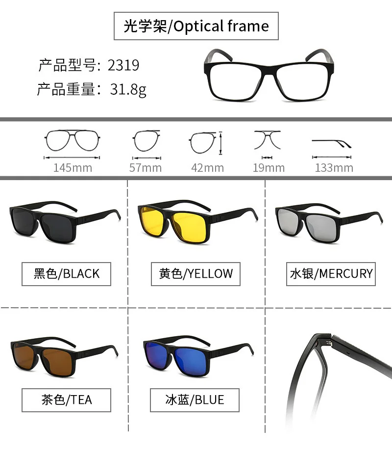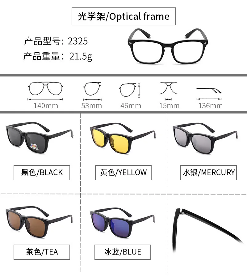 Lenses Color: Gold, Ships From: CHINA, Frame Color: WHITE - 6 In 1 Magnetic Clip Sunglasses And Prescription Glasses Frame Men Women Polarized or Night Vision Lenses PC or TR90 Frame 2333