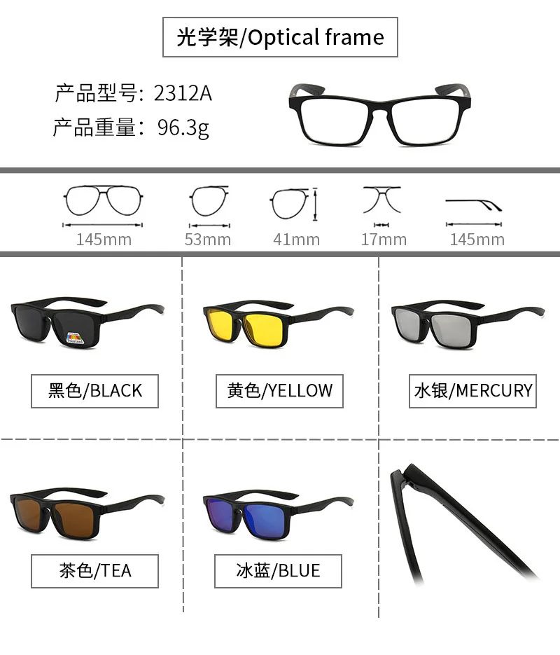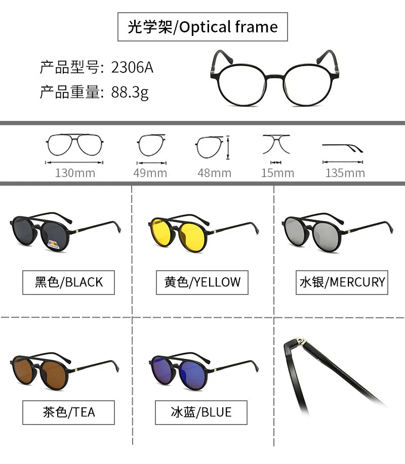Lenses Color: Green, Ships From: CHINA, Frame Color: WHITE - 6 In 1 Magnetic Clip Sunglasses And Prescription Glasses Frame Men Women Polarized or Night Vision Lenses PC or TR90 Frame 2333