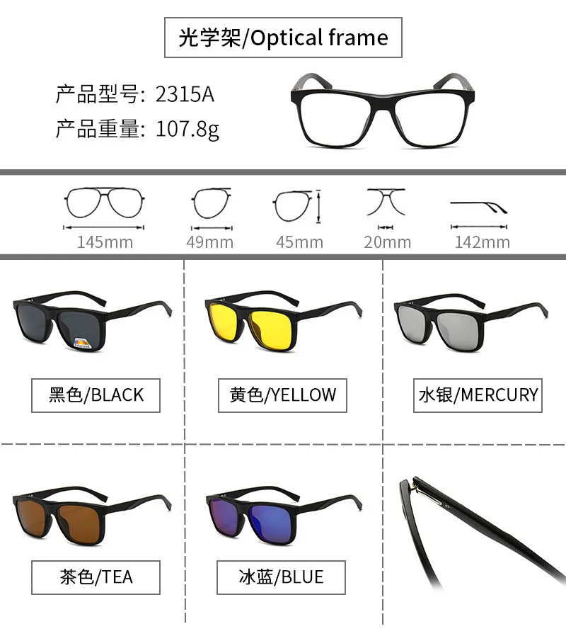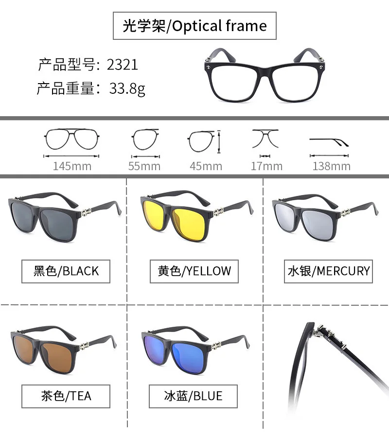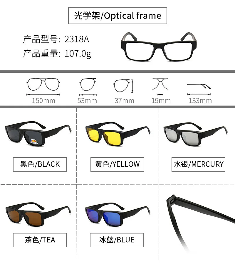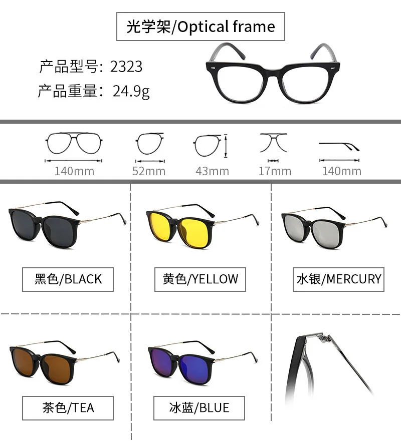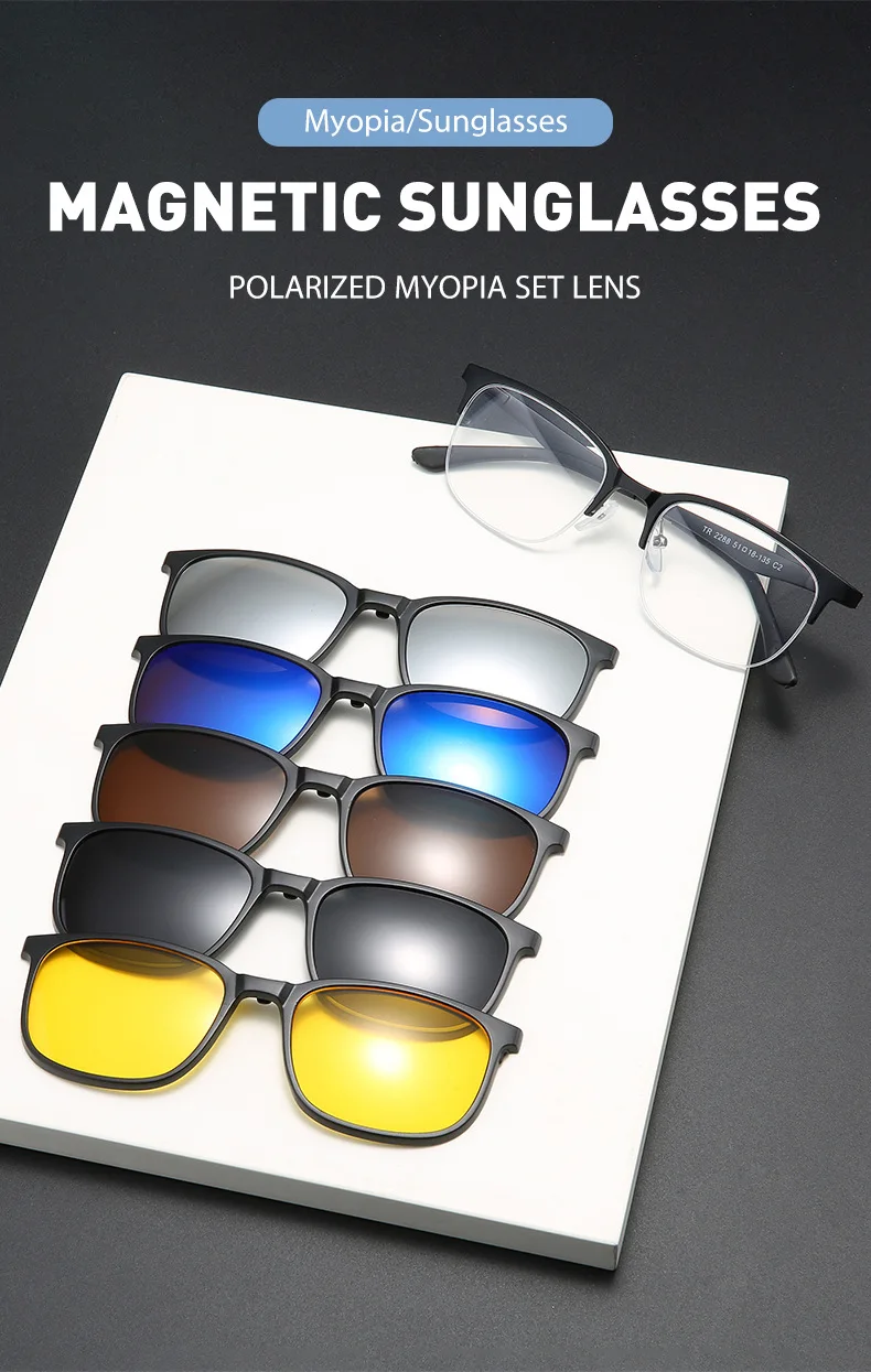 Lenses Color: Ice Blue, Ships From: CHINA, Frame Color: WHITE - 6 In 1 Magnetic Clip Sunglasses And Prescription Glasses Frame Men Women Polarized or Night Vision Lenses PC or TR90 Frame 2333