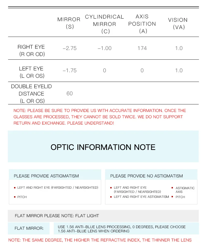 Lenses Material: CR-39