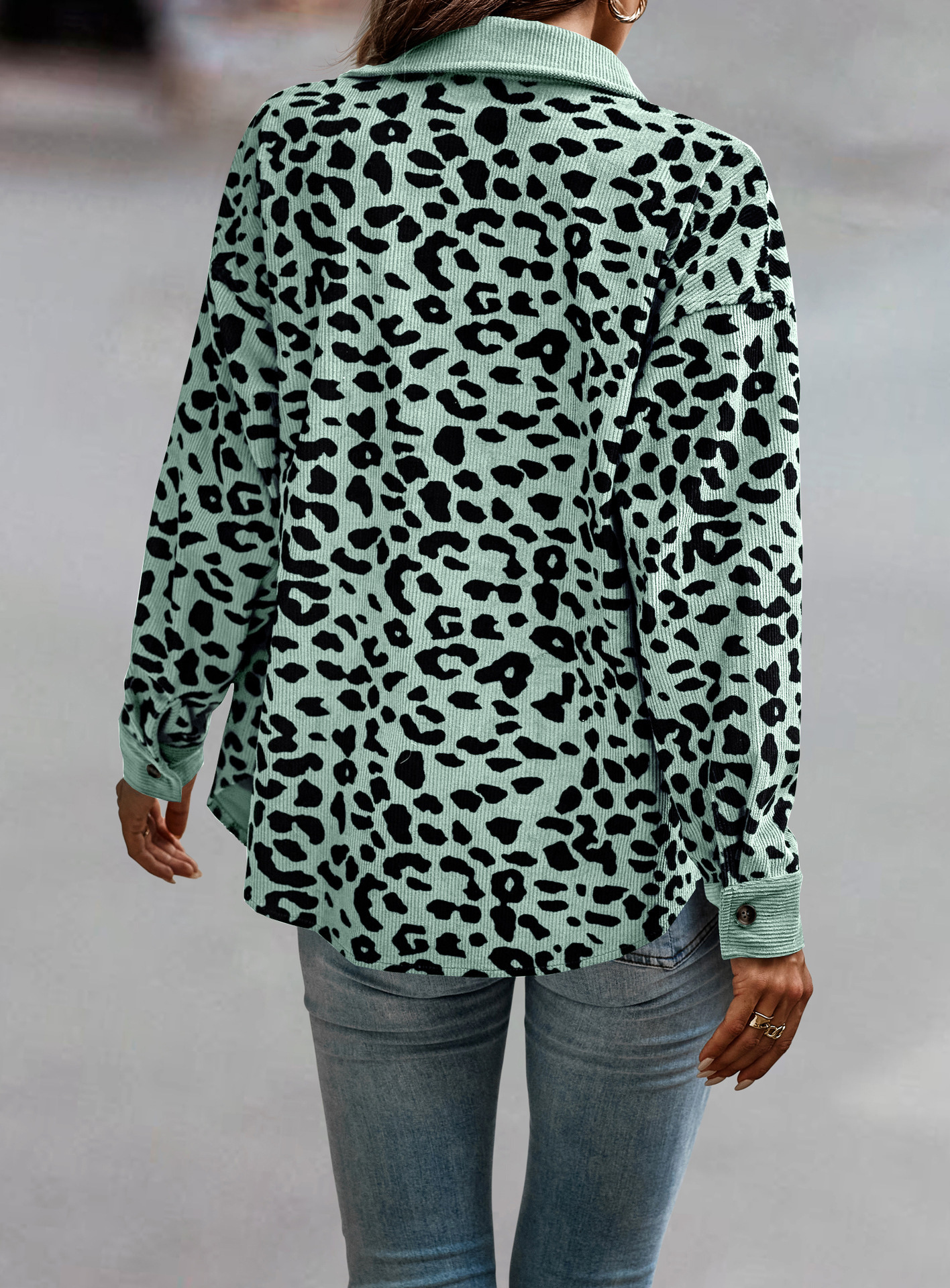 Leopard Print Shirt Coat Fashion Button Long Sleeve Jacket Women