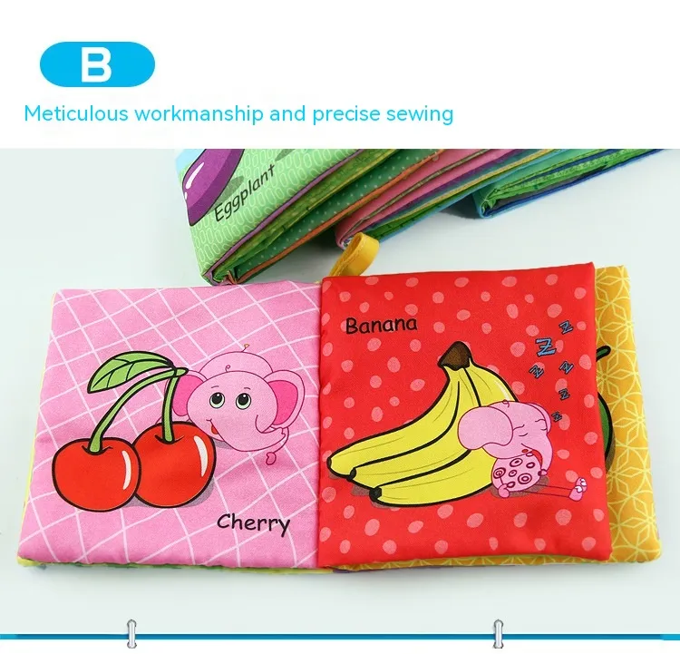 Color: Libro de tela de animales de 4 páginas y 8 lados, libro de tela de verduras de 4 páginas y 8 lados, libro de tela de transporte de 4 páginas y 8 lados, libro de tela de frutas de 4 páginas y 8 lados