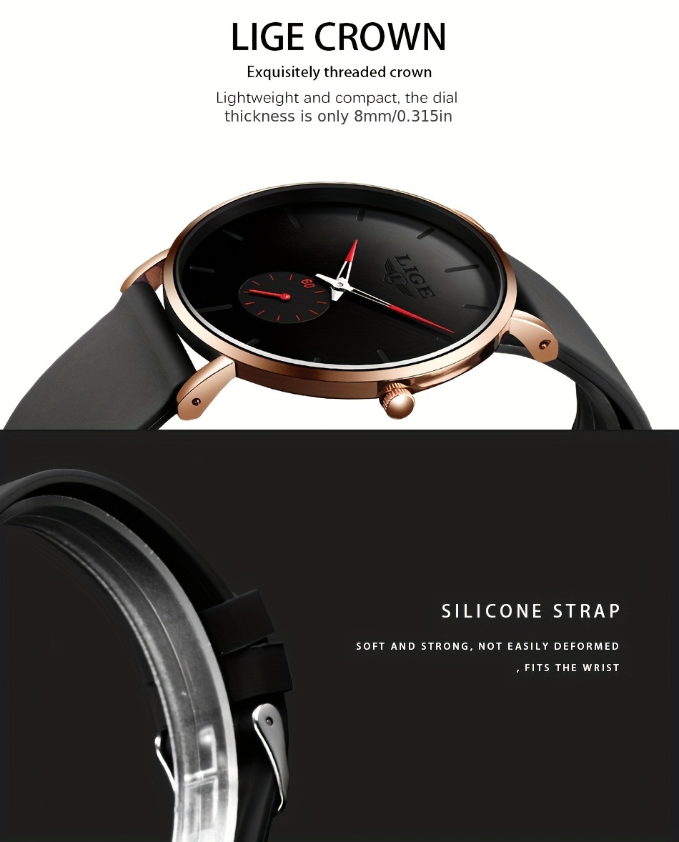 - The Top Brand LIGE New Fashion Men'S Watches Luxury Sport Waterproof Easy Ultra-Thin Quartz Watch | Zinc Alloy Case, Silica Gel Strap, IP68 Water Resistance, Non-rechargeable Button Battery makes a stylish gift for men