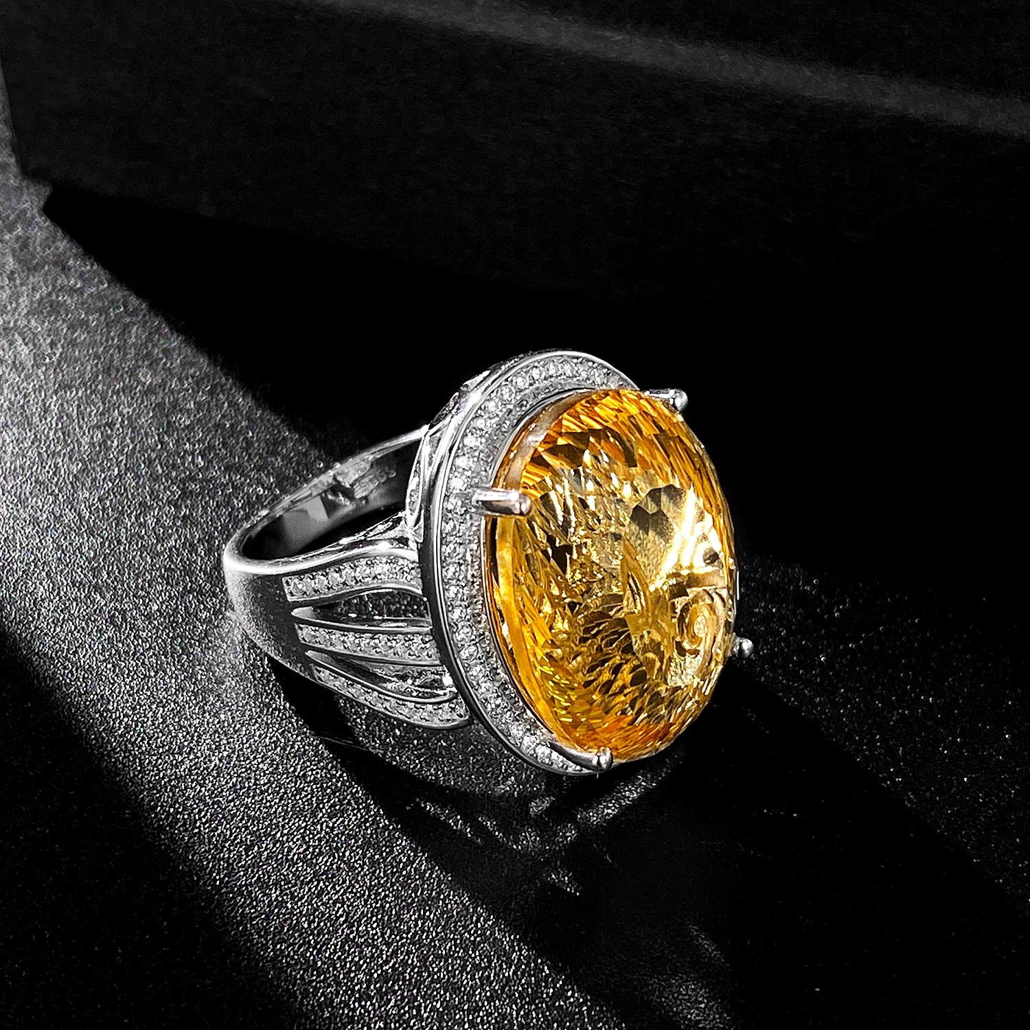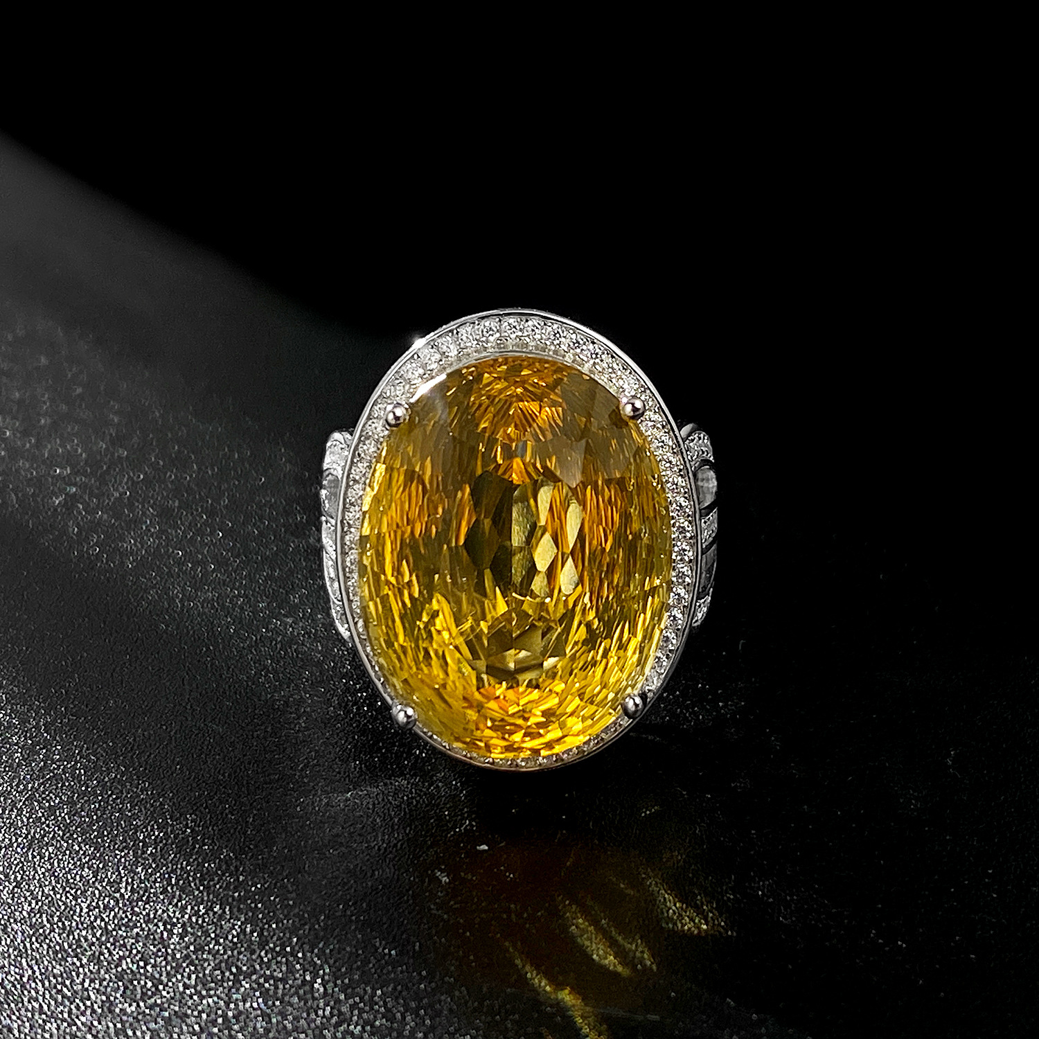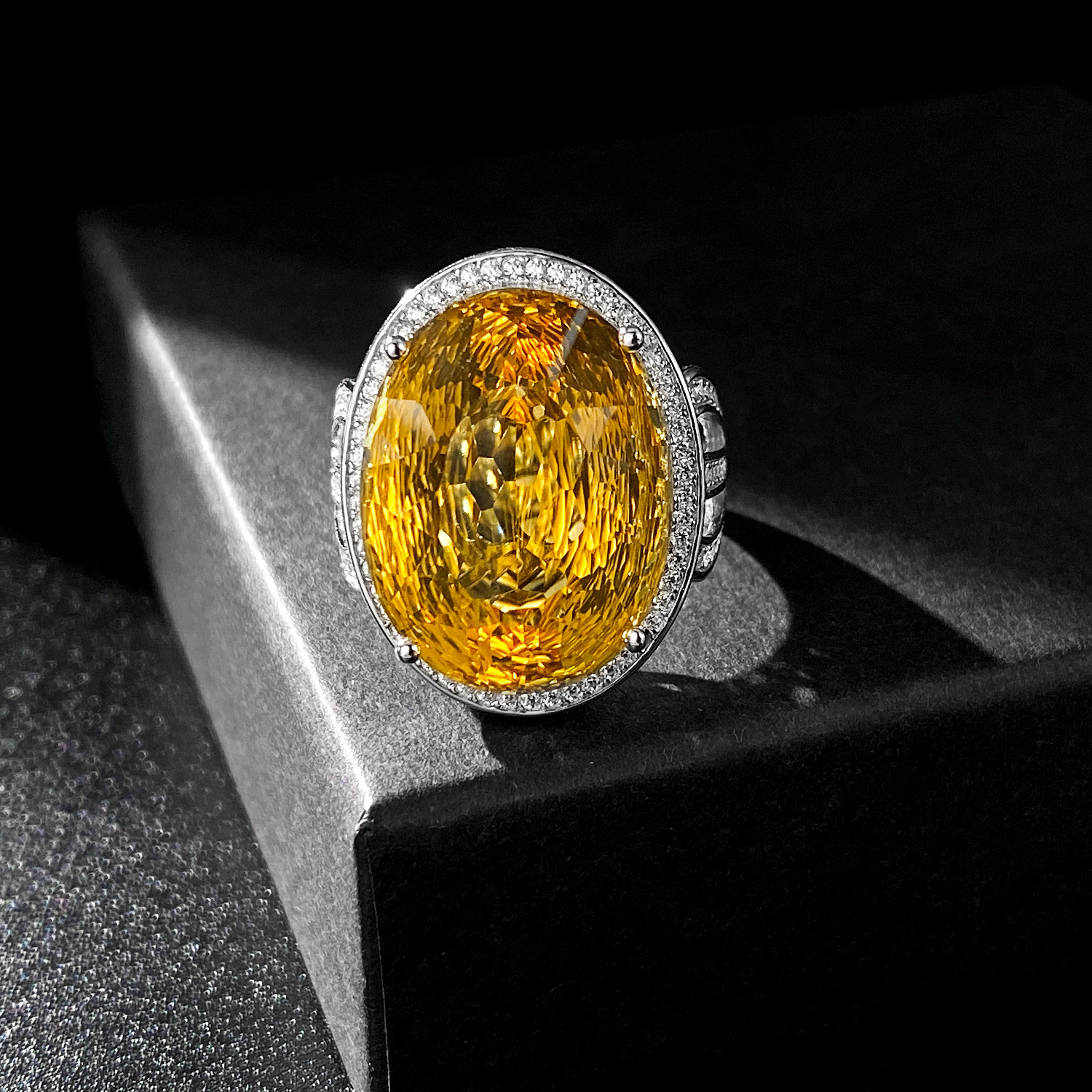 Light And Extravagant Wind Jewelry Large Denier Natural Citrine Ring S925 Silver Set Crystal