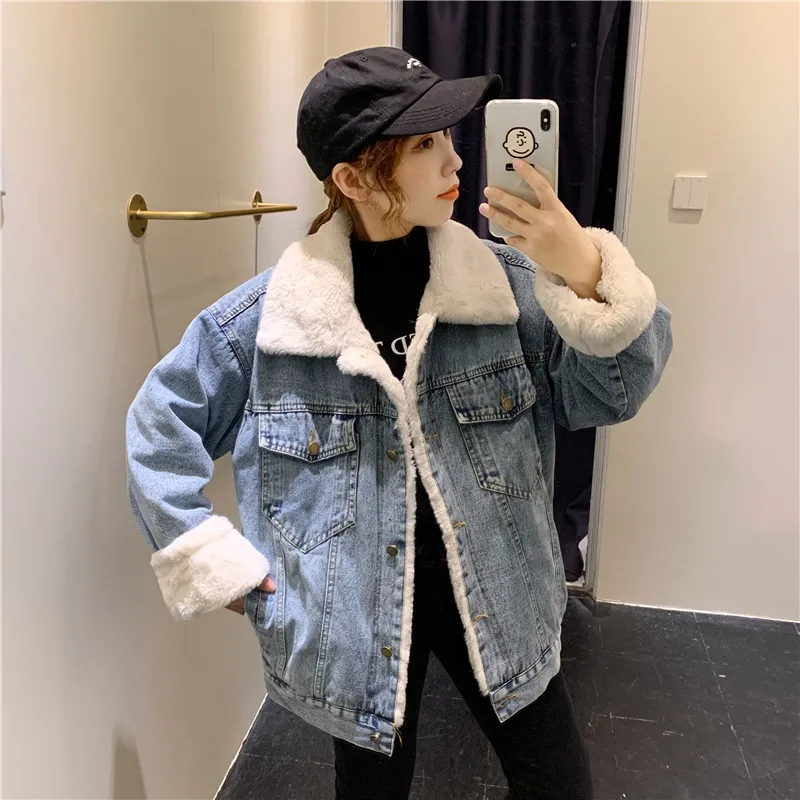 The light blue wash of the denim offers a fresh and trendy aesthetic, while the plush fur lining adds a touch of luxury and sophistication. Designed with comfort and style in mind, this jacket is not just an outerwear piece, but a fashion statement that will elevate your outfits all season long. With its classic button-down design, faux fur collar, and soft interior, this jacket is the perfect mix of classic denim and contemporary elegance.