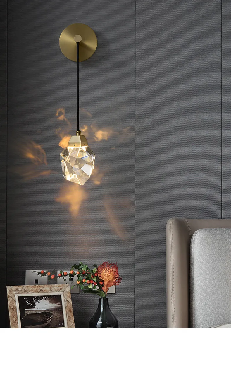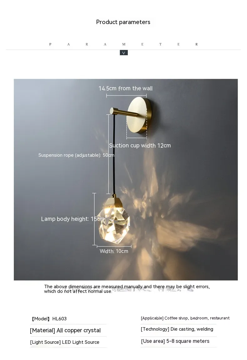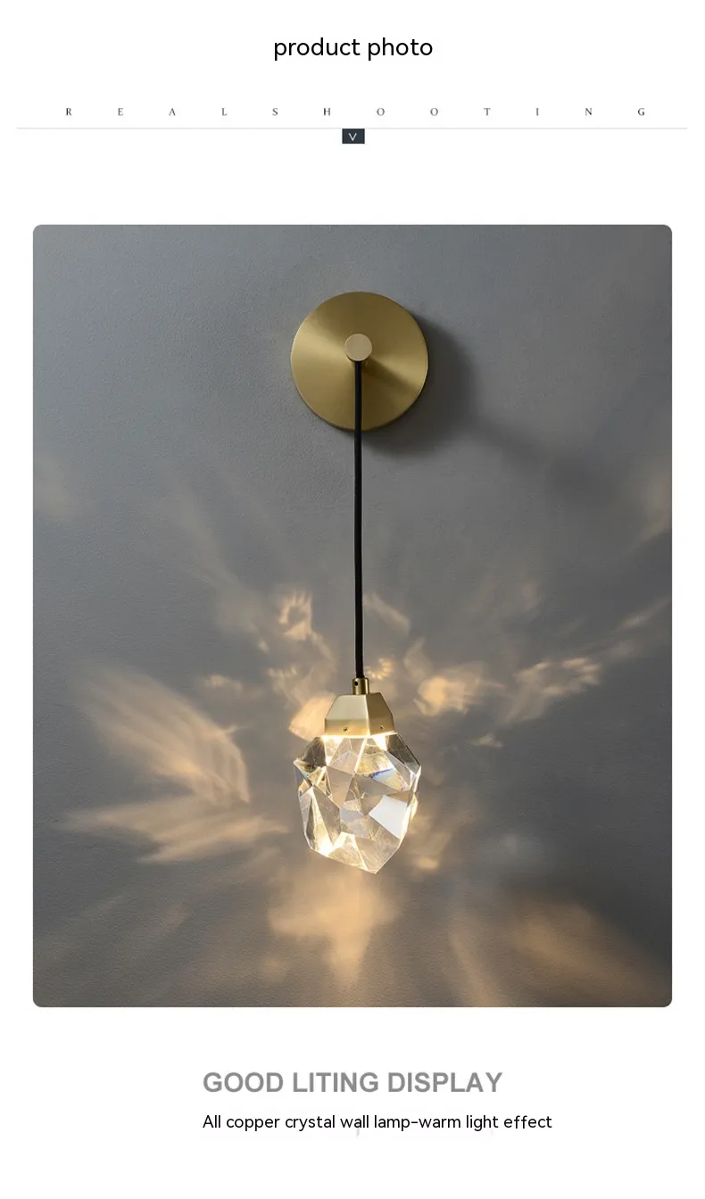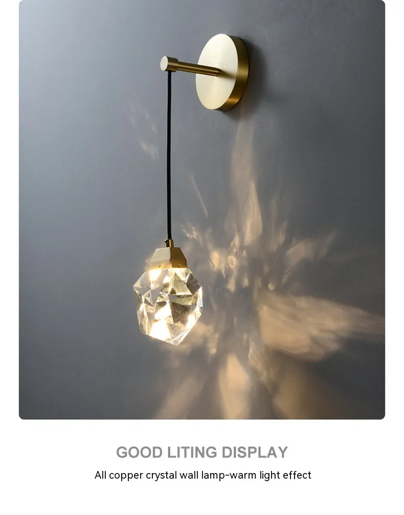 Modern and Elegant Design: Featuring a sleek copper base and intricate crystal detailing, this wall lamp combines timeless