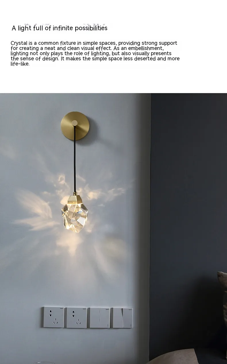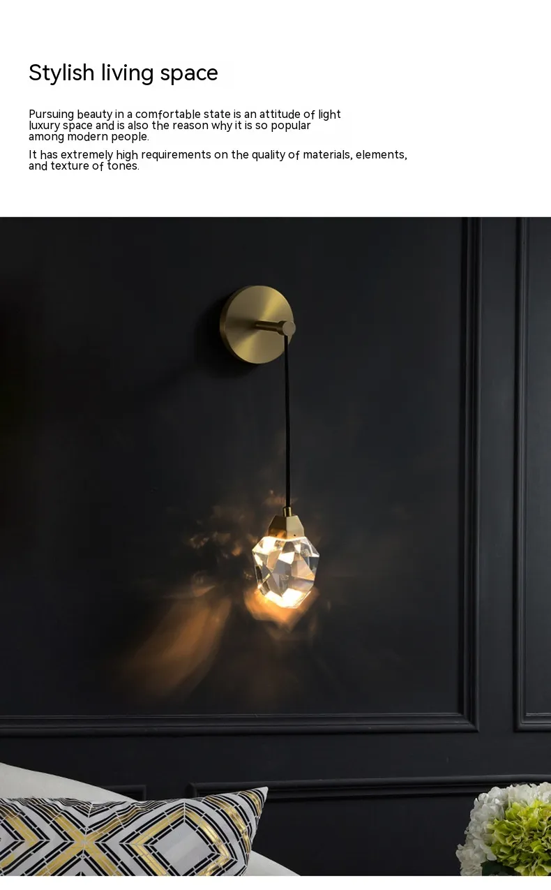 The Light Luxury Crystal Modern Living Room Background Copper Wall Lamp is a perfect blend of elegance and modernity, designed to add a touch of sophistication to any space. With its striking crystal details and contemporary copper finish, this wall lamp elevates your living room, hallway, or any background setting. Whether you're looking to enhance your home decor or illuminate your space with style, this lamp is the perfect choice.