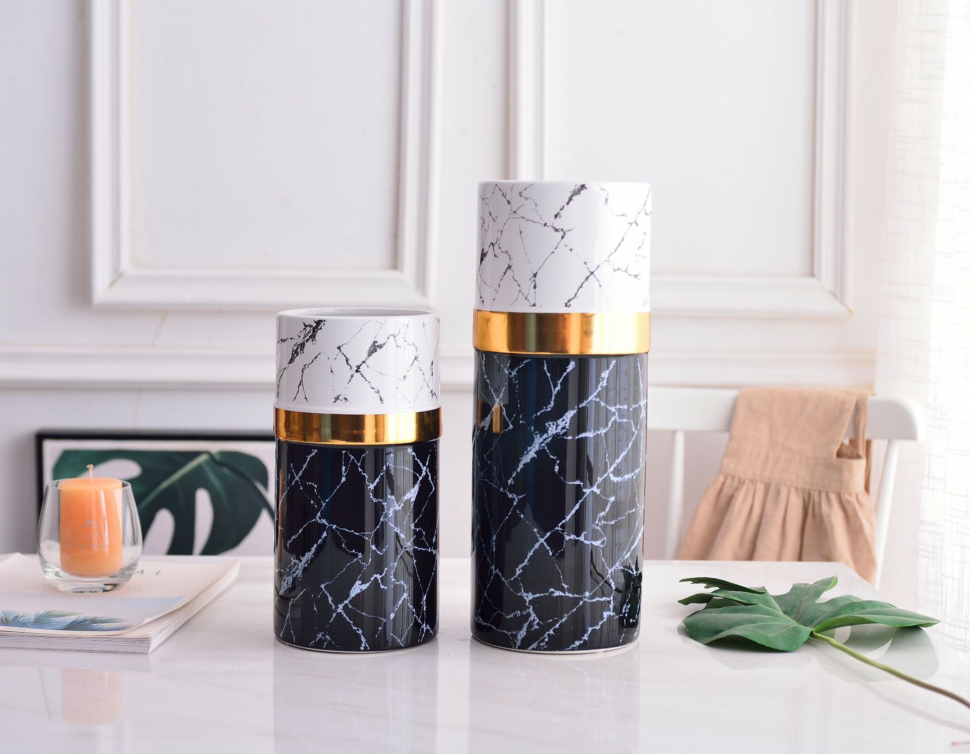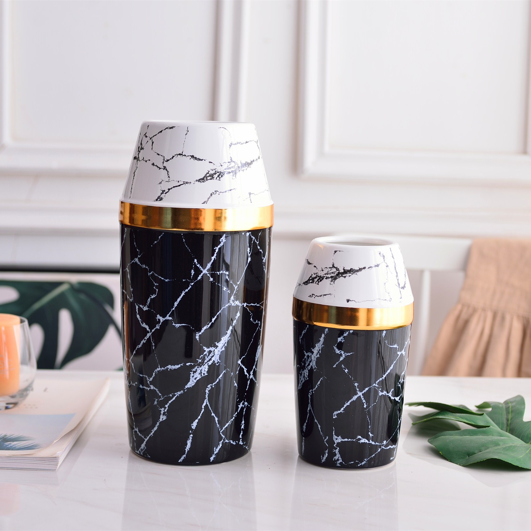 Transform your living space with the Light Luxury Style Simple Modern Marbled Golden Ceramic Vase, a perfect blend of sophistication and modern elegance. This exquisite vase features a unique marbled pattern enhanced with golden accents, making it an ideal centerpiece for any contemporary home. Whether displaying fresh flowers, dried arrangements, or standing alone as a decorative piece, this vase adds a touch of luxury and artistry to your decor.