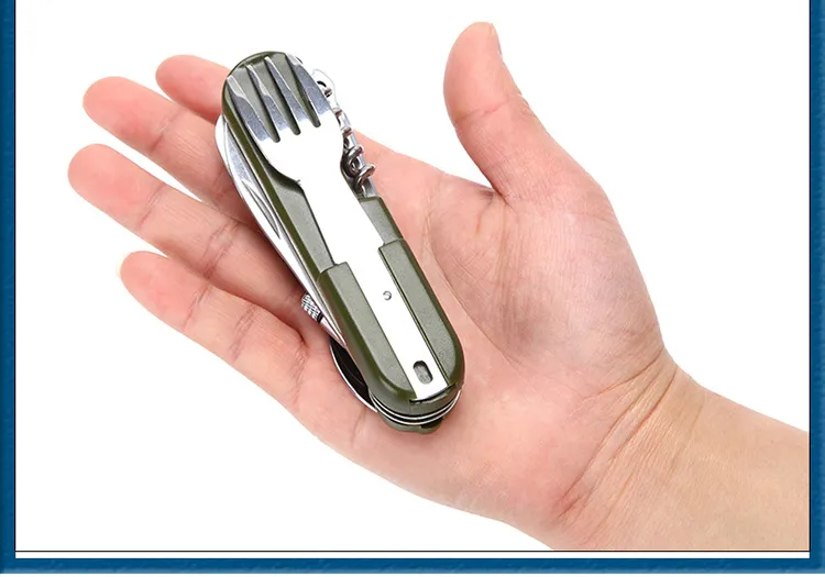 Size: the size of the spoon: 10*3CM (length * width) fork; size: 10*2CM (length * width); saw length of 8cm, tool length 8cm, bottle opener