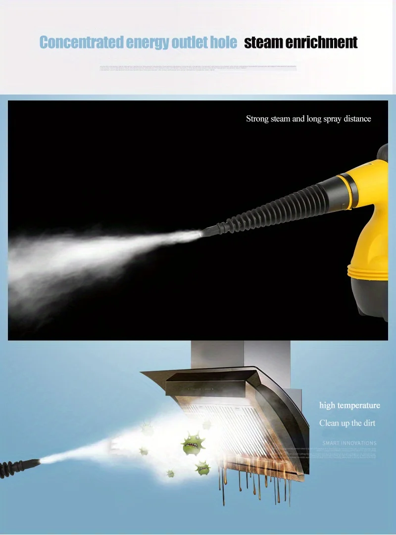El limpiador a vapor portátil de alta temperatura ofrece una solución potente para eliminar la suciedad, la grasa y las manchas difíciles en el hogar y el vehículo. Ideal para campanas extractoras de cocina, baños, interiores de automóviles y más, este limpiador a vapor portátil proporciona vapor a alta temperatura que desinfecta las superficies sin necesidad de productos químicos agresivos. Equipado con múltiples accesorios, este versátil limpiador está diseñado para diversas superficies, garantizando una limpieza profunda y eficiente en cada uso.