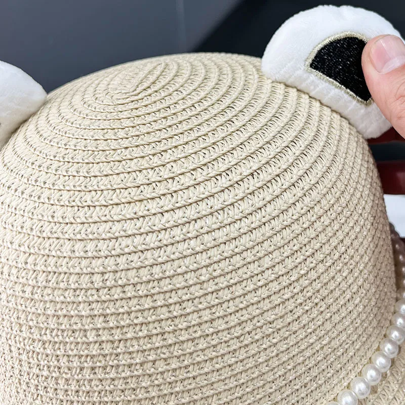 Lindo y sencillo sombrero de paja de pescador con orejas de osito