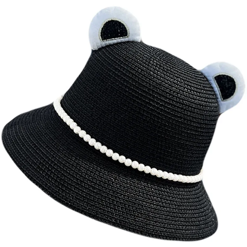 Sombrero de paja simple y lindo de pescador con orejas de osito
