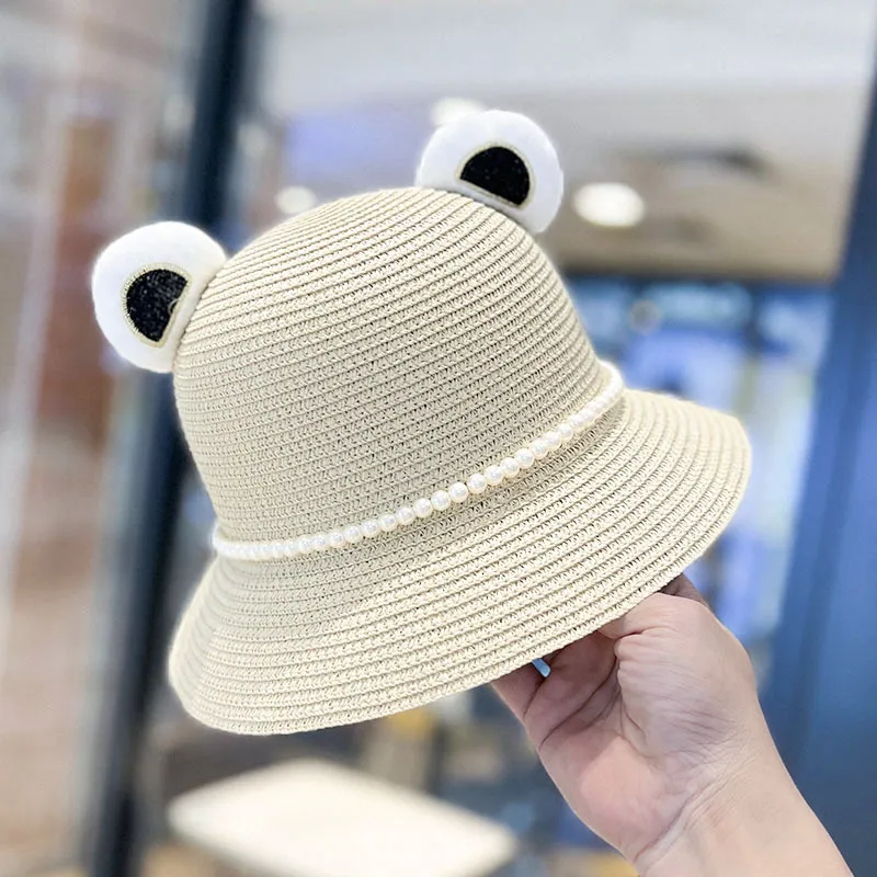 Presentamos el Sombrero de paja simple y lindo de pescador con orejas de osito, ¡un accesorio imprescindible para el guardarropa de verano de tu hijo!