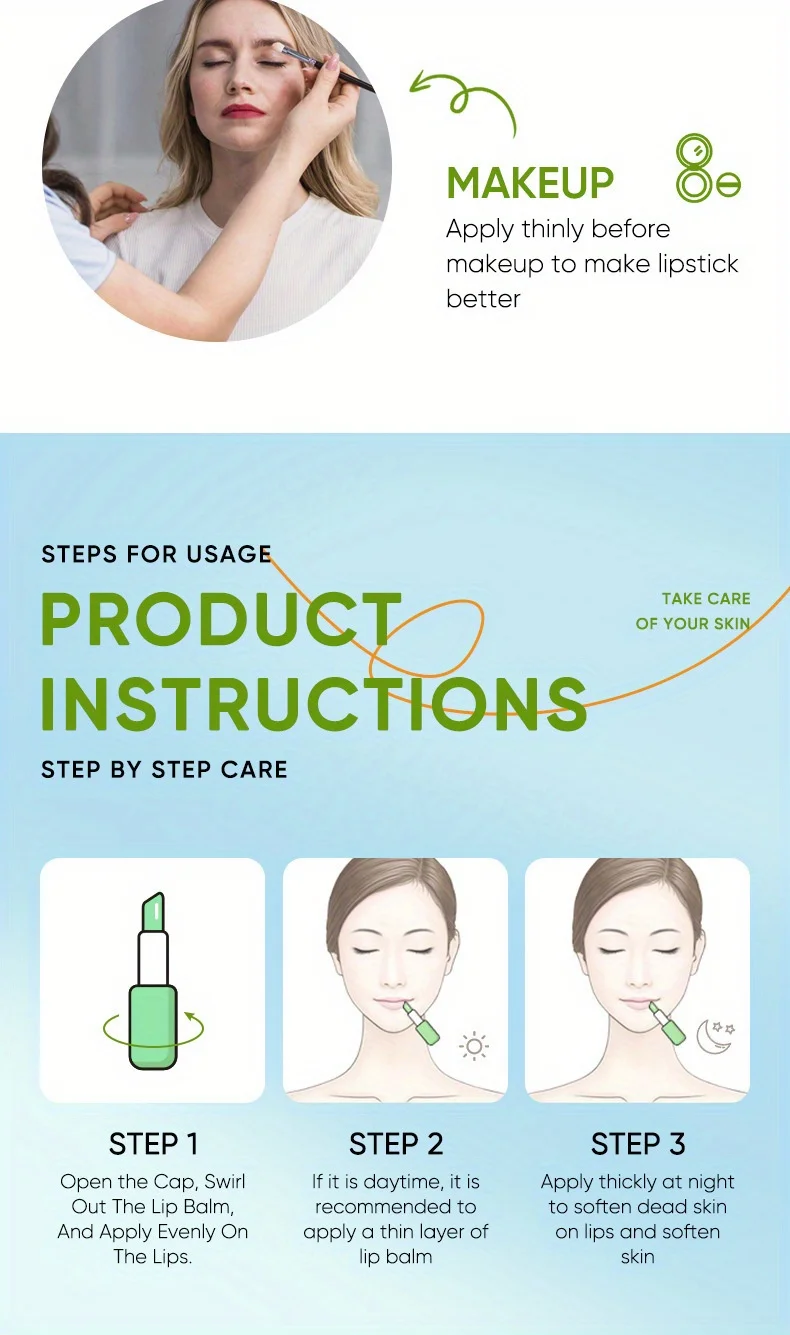 your lips, keeping them soft, smooth, and moisturized throughout the day. It helps prevent the uncomfortable cracking and peeling that often