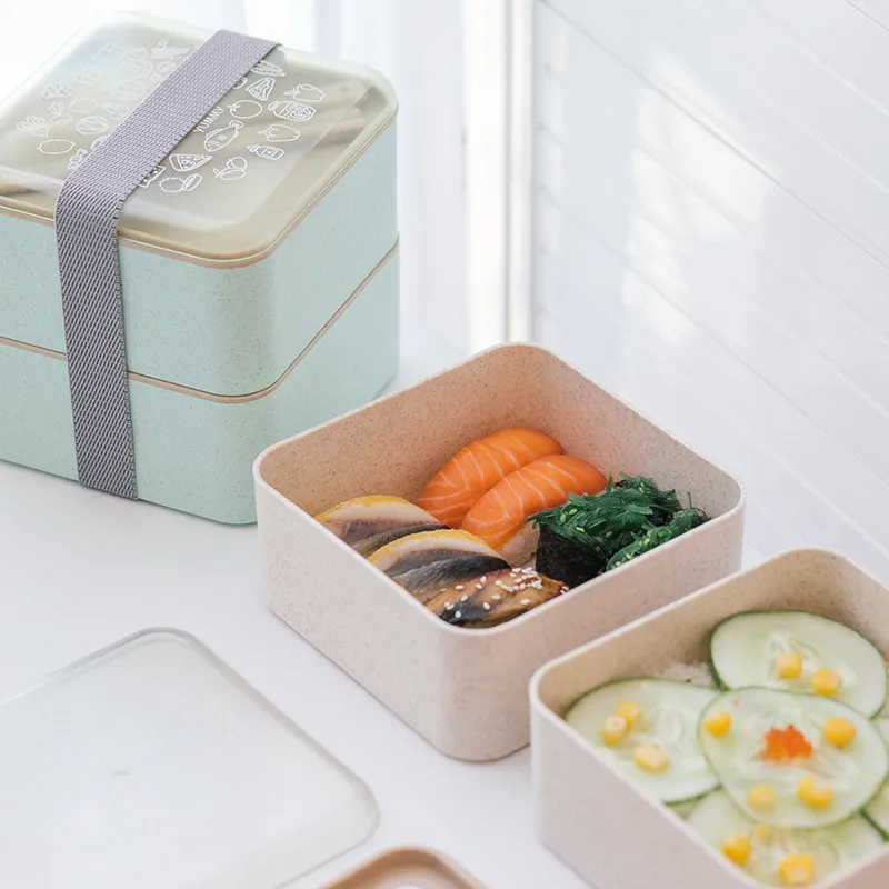¿Por qué elegir la lonchera cuadrada de paja de trigo de doble capa?