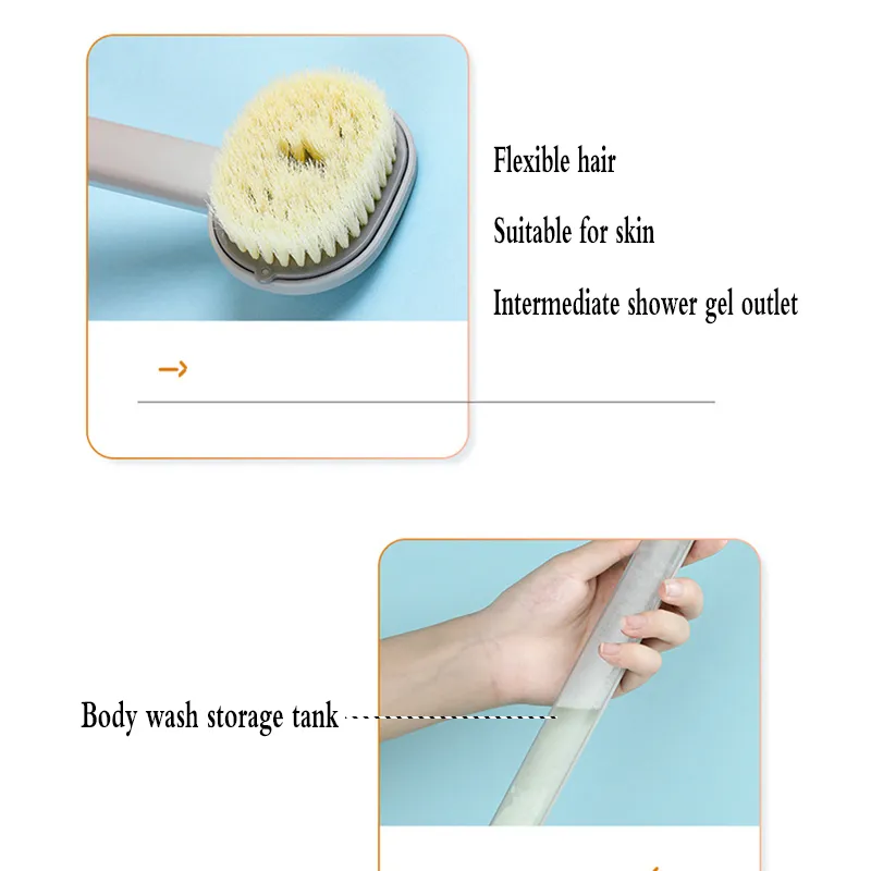 [Top materials]: Long-handle liquid bath brushes use PBT bristles, which are moderately soft and hard. PP handle material is comfortable to use, and will not cause any skin allergies.