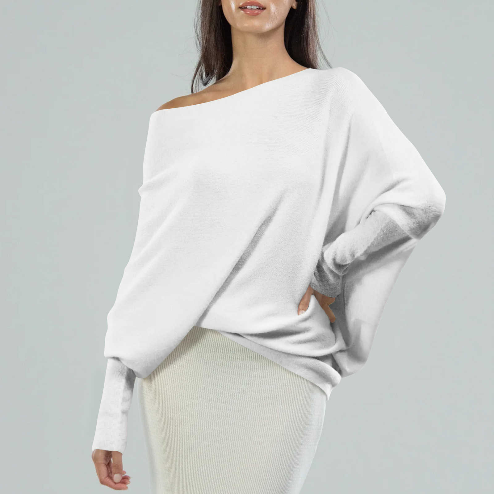 Loose Bat Sleeve Sweater Tops Simple Casual Fashion Versatile Solid Color Round Neck Sweater For Women