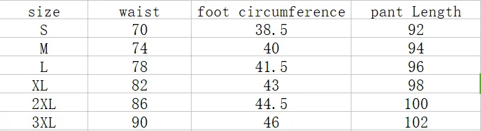 Trouser mouth style: small feet 1. Asian sizes are 1 to 2 sizes smaller than European and American people. Choose the larger size if your size between two sizes. Please allow 2-3cm differences due to manual measurement.