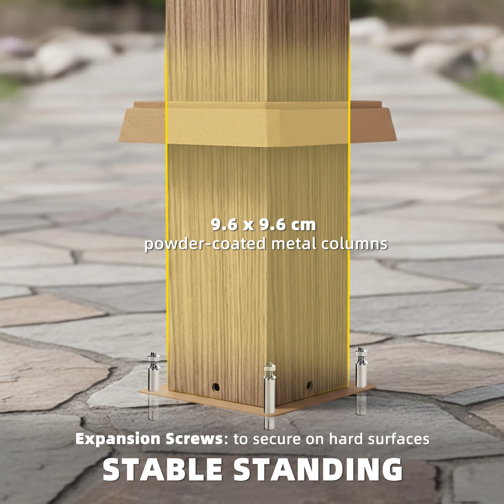 - - 3.8 x 3.8 in thick steel columns with powder coating are strong and solid