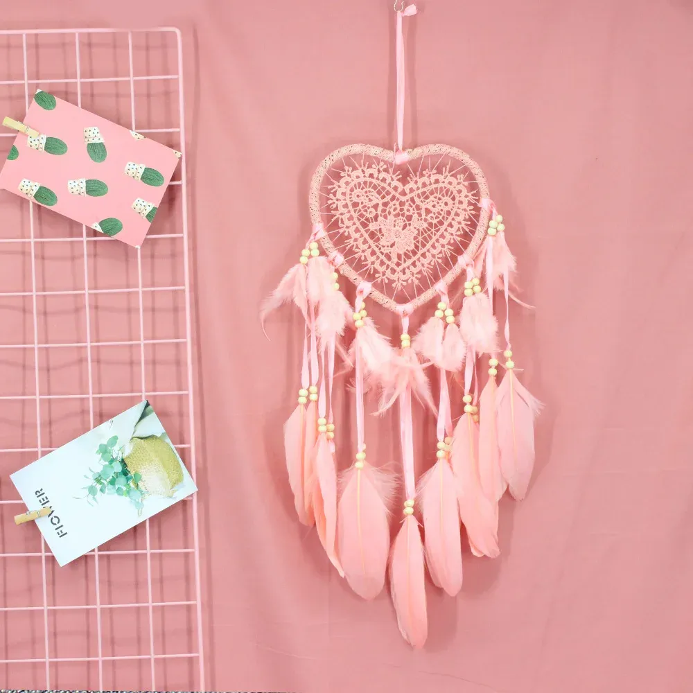 Material: Feather, polyester thread, wooden beads, ABS ring