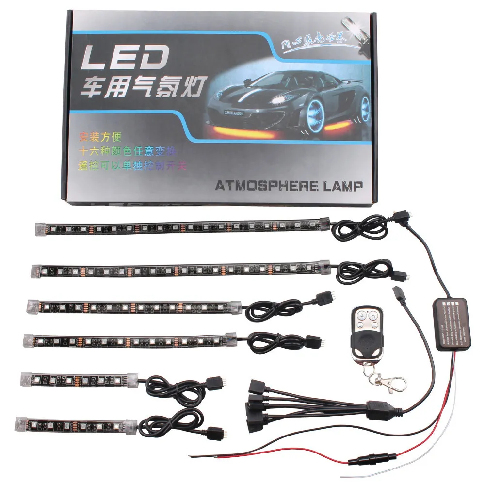 Luces de ambiente RGB universales modificadas para automóviles y motocicletas, luces decorativas, luces de ambiente, decoración de automóviles, control remoto de seis LED