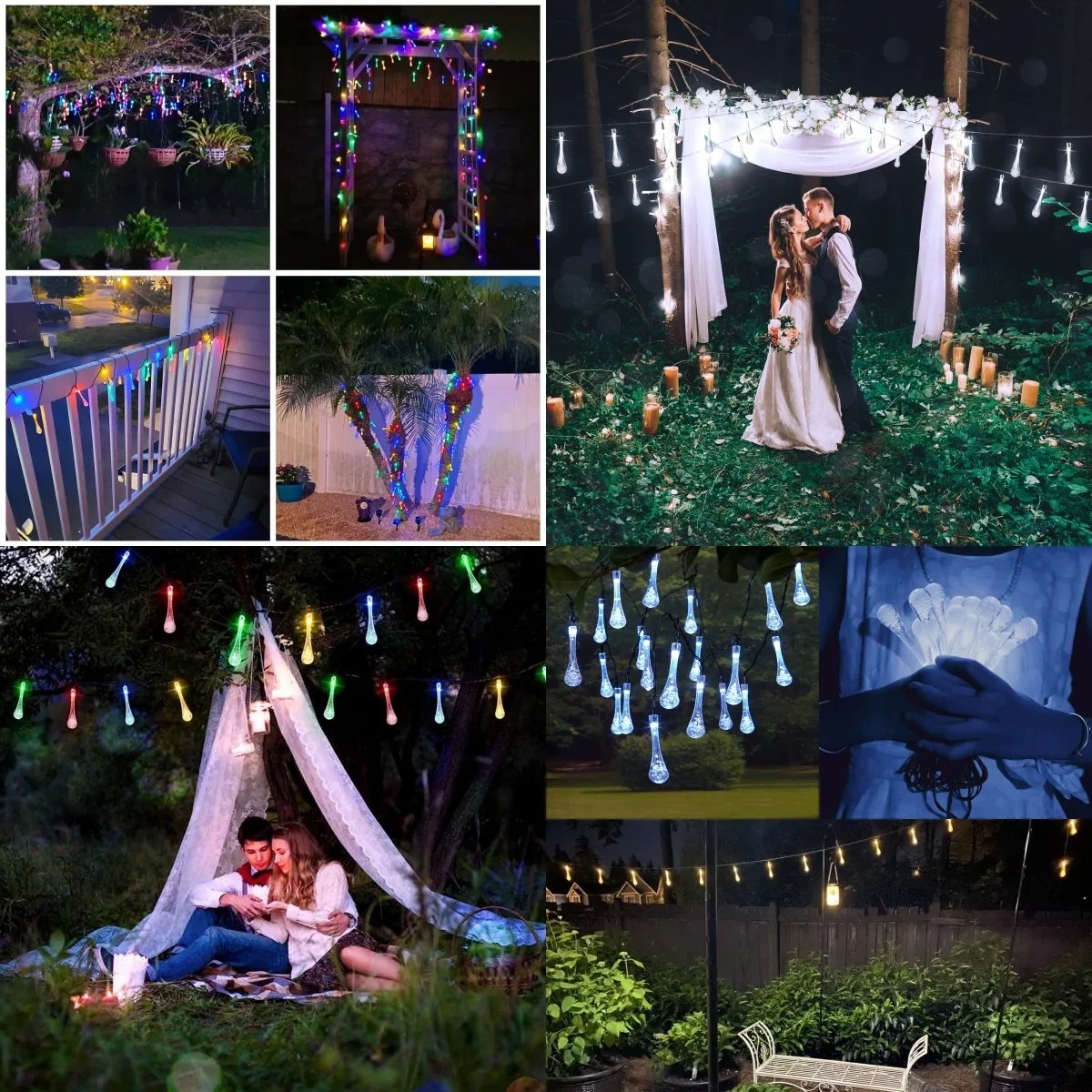 【Diseño único y cantidad preferencial】 El diseño de esta cadena de luces solares está inspirado en el elemento natural: la gota de agua. Su luz colorida y dinámica te hará sentir como en la naturaleza y revitalizará tu vida. Es una excelente opción para decorar tu patio y jardín. El paquete de 30 bombillas te permite una decoración más versátil.