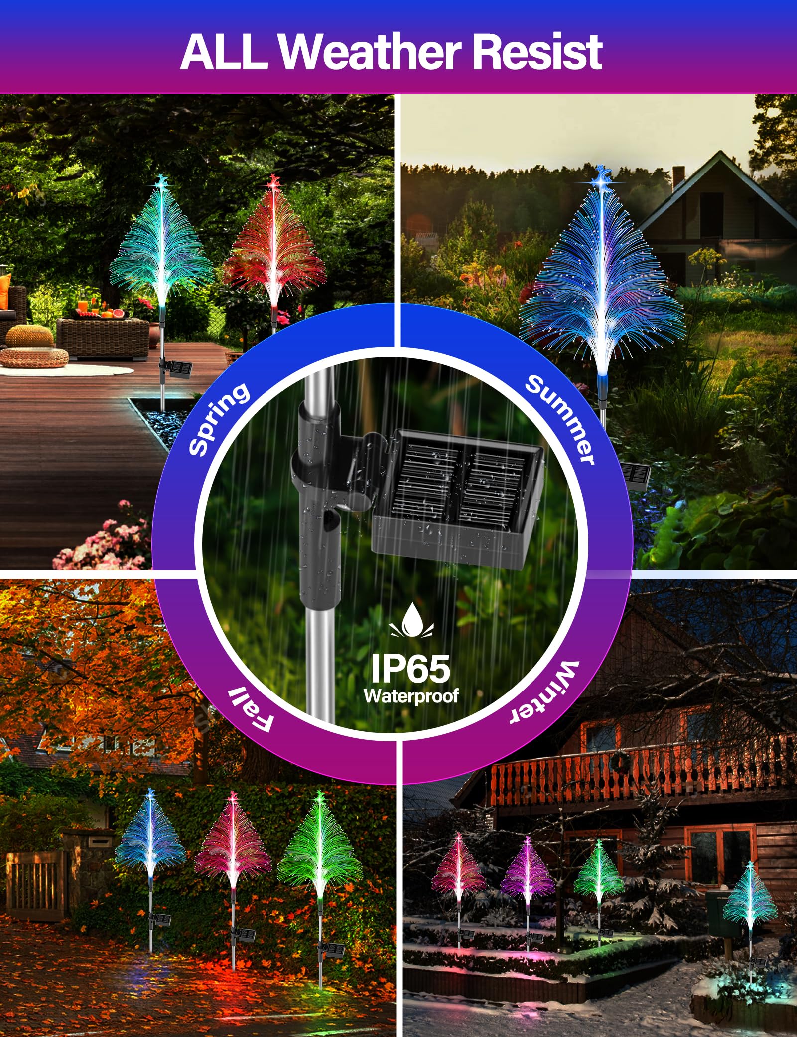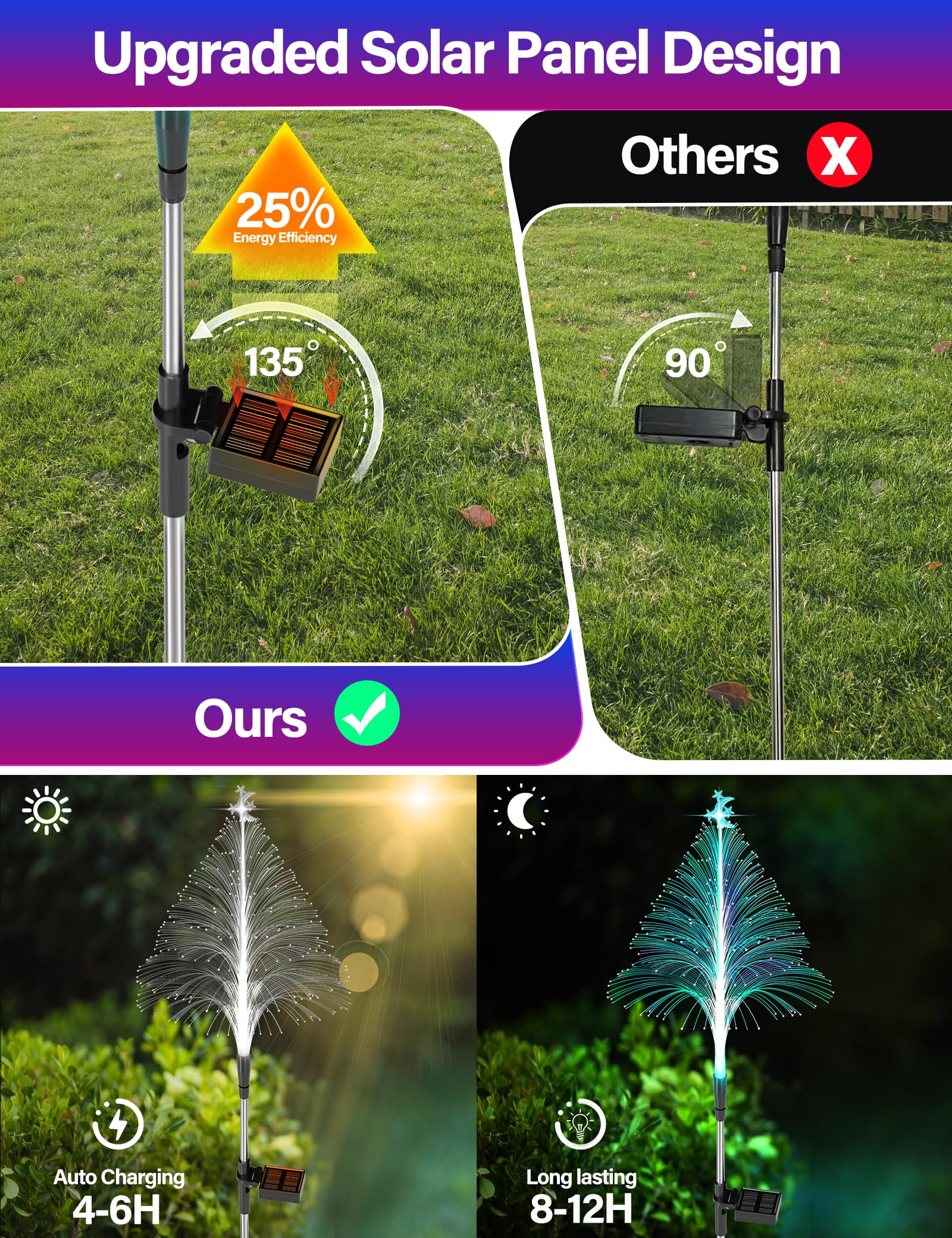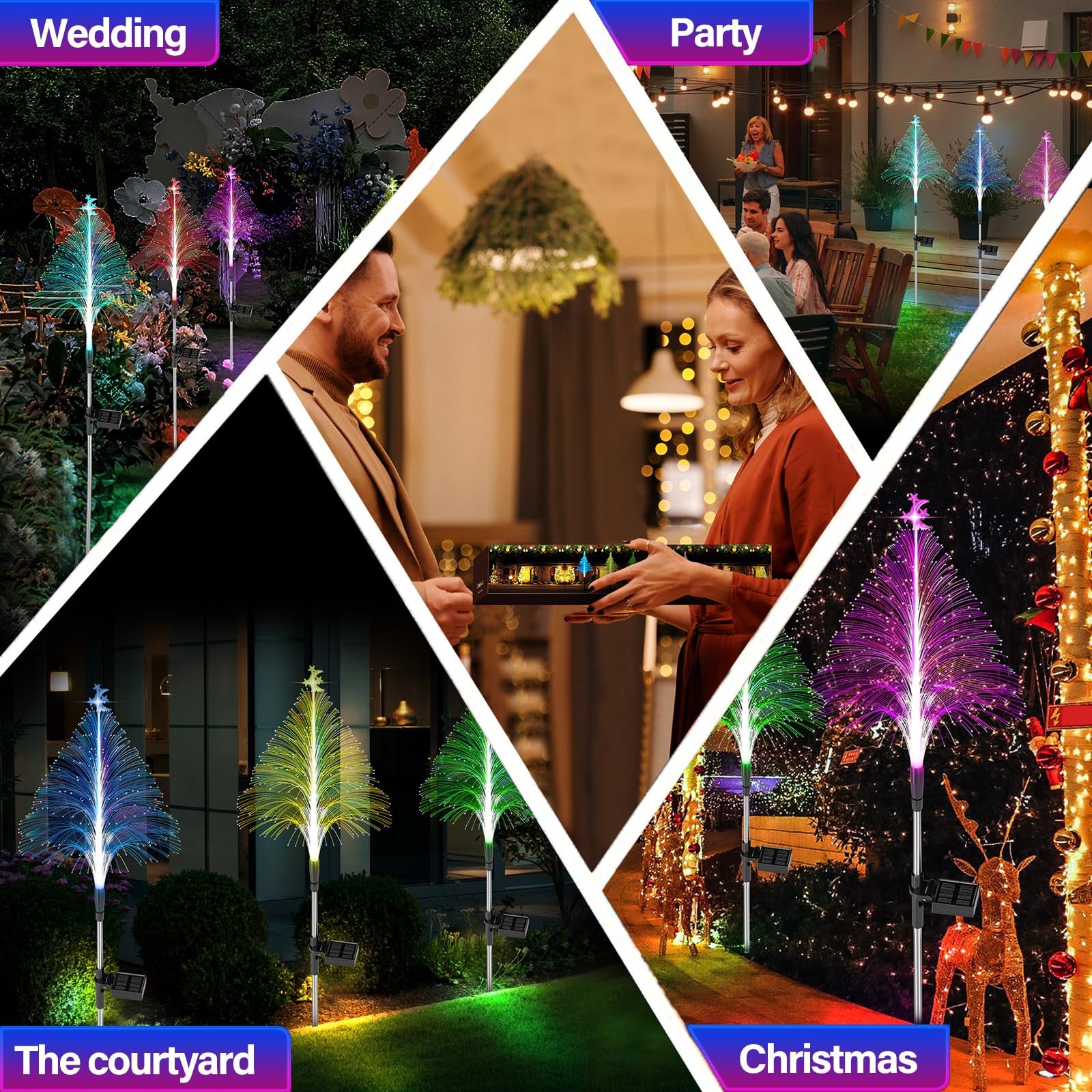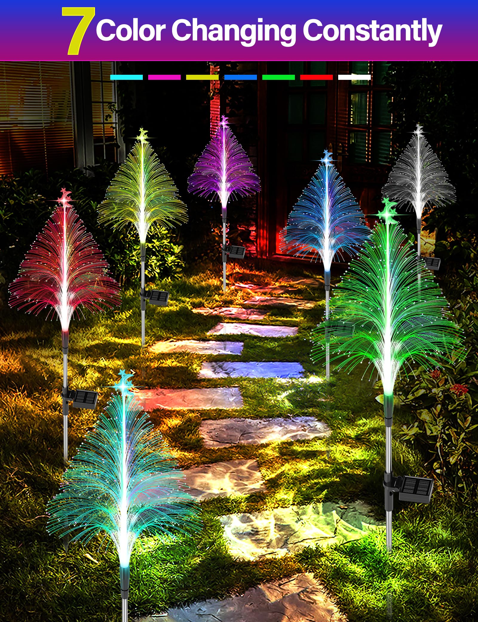 Transforma tu espacio al aire libre en un fascinante país de las maravillas con nuestras cautivadoras luces solares para árboles de Navidad de 7 colores que cambian. Ilumina tu entorno con su encantador brillo, cambiando elegantemente entre tonos vibrantes.