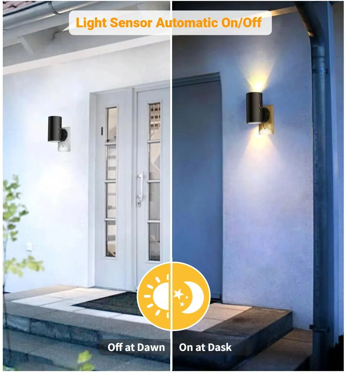 - Automatic mode: Thanks to the built-in light sensor, the lamp automatically turns on at sunset and off again at sunrise. A perfect solution to illuminate your corridors, stairs or bathrooms discreetly and practically.