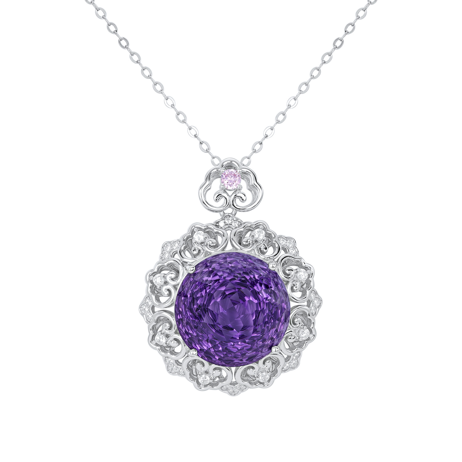 Luxurious S925 Silver Set Natural Amethyst Pendant Female Vintage Pattern Senior Jewelry Quality Sweater Chain