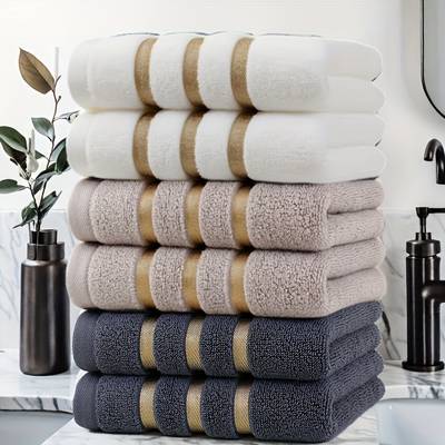 The Luxury 6pcs Cotton Towel Set offers soft, absorbent towels with a modern striped design and high-quality cotton construction. Perfect for everyday use, gifting, or creating a luxurious spa experience at home, these towels bring comfort, style, and durability to your bathroom.