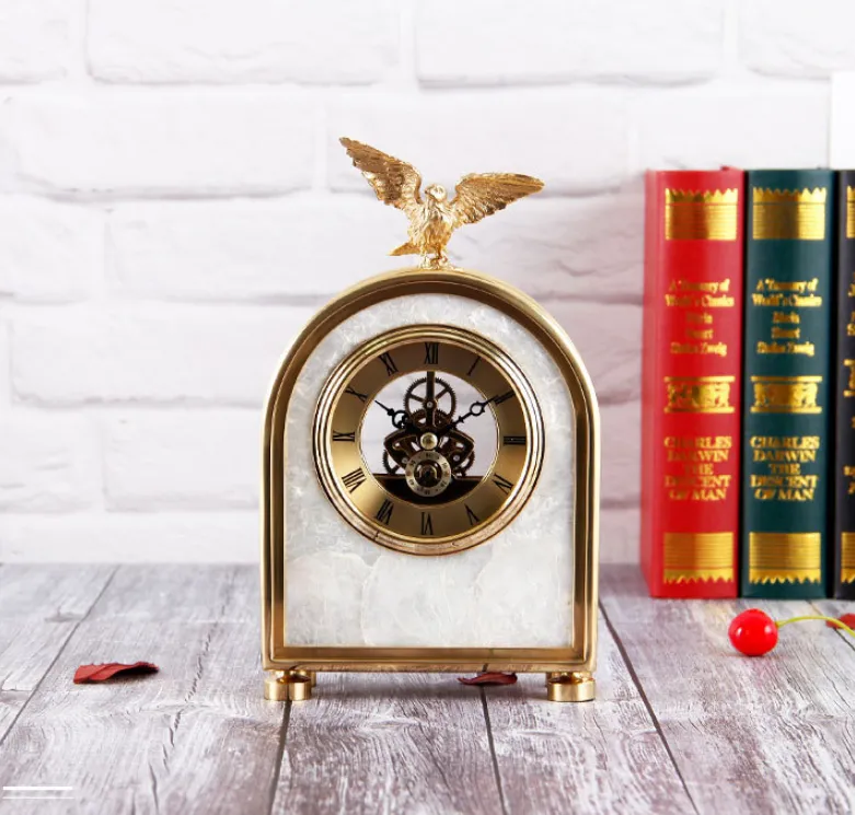 Luxury Decoration Pure Copper Table Clock Living Room Home Accessories Shell Eagle Clock Ornaments Gift Ornaments