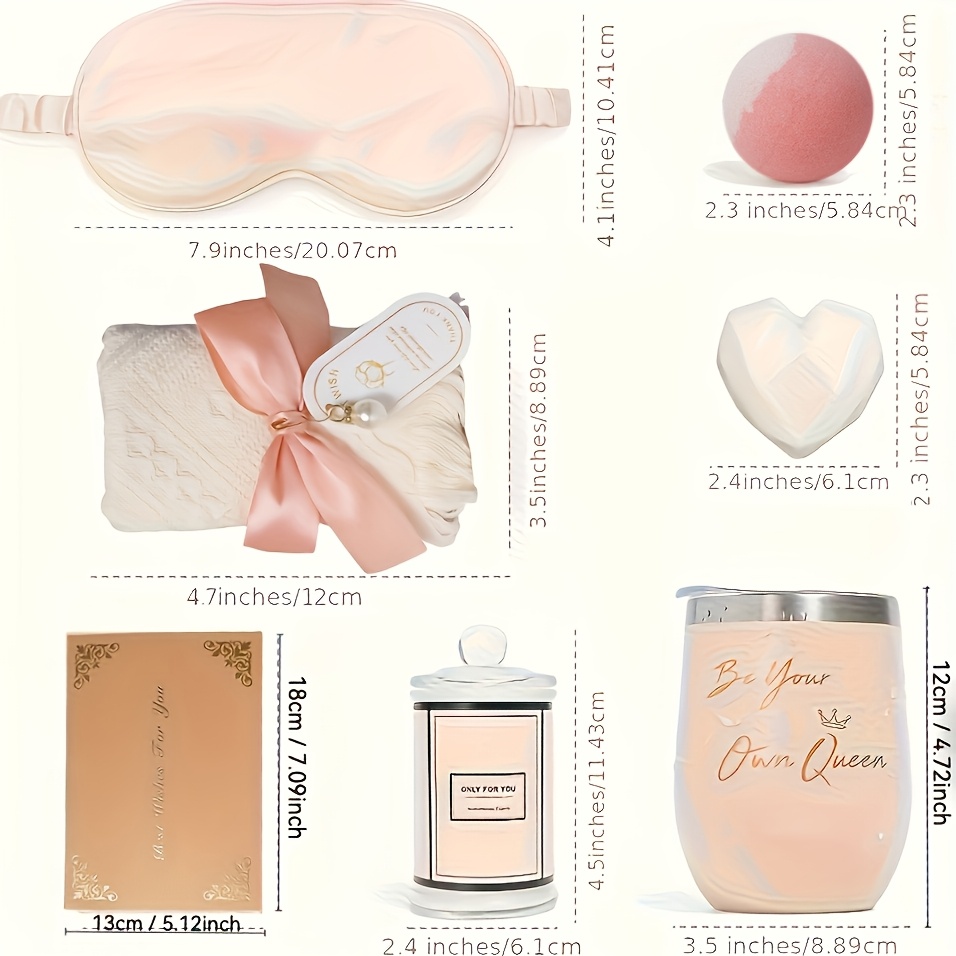 Luxurious Bath Essentials: Includes a bath bomb, bath salts, and soothing body care products for a spa-like experience at
