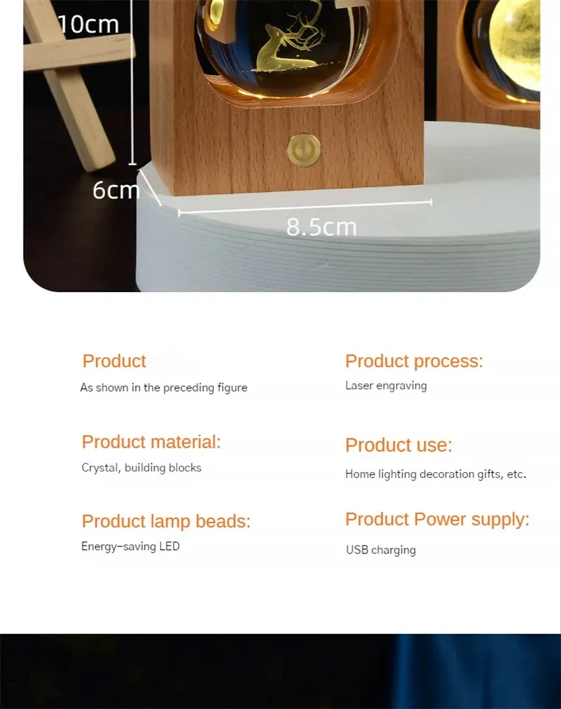 Usa la luz nocturna de bola de cristal de haya para añadir un toque mágico a eventos especiales como cumpleaños, aniversarios o celebraciones navideñas. Su brillo cautivador la convierte en una fantástica pieza central o detalle decorativo.
