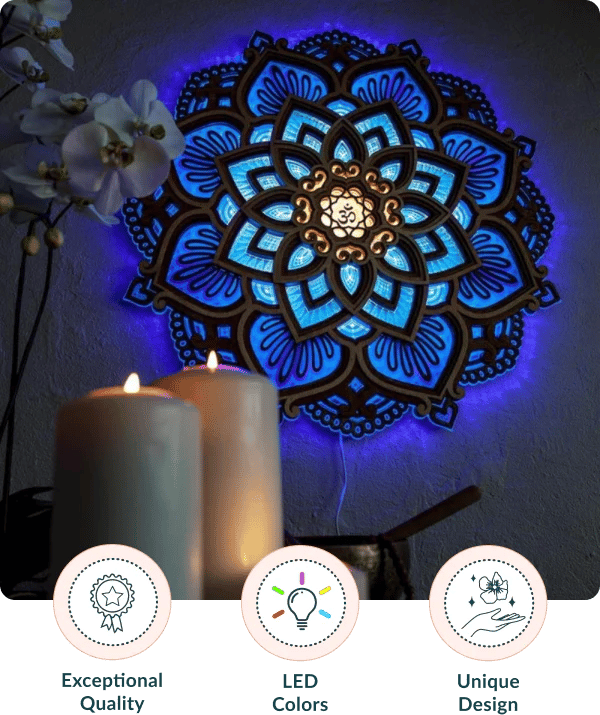 La transición a un estado de meditación consciente a veces puede ser difícil. Puede sentirse sin inspiración, distraído o incluso perder la conexión con su ser interior. La lámpara de luz Mandala de flor de loto está diseñada para ayudarlo a concentrarse durante todas sus prácticas espirituales. Emite una luz relajante que lo lleva suavemente a un estado de meditación profunda. 💖 Los mandalas no solo sirven para decorar la casa, sino que también presentan paz y sabiduría. Las bombillas de respiración son capaces de modificar la depresión de los ambientes para Apoyando a personas que, bajo una enorme presión, no pueden meditar ni liberarse.