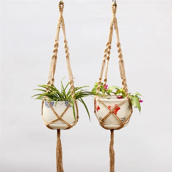 The hanger is designed to accommodate a variety of pot sizes, making it a versatile option for different plant types. Its flexible structure allows the pot to sit securely while maintaining balance when suspended. This makes it suitable for hanging from ceilings, wall hooks, or beams, creating an elevated plant display that enhances room aesthetics.