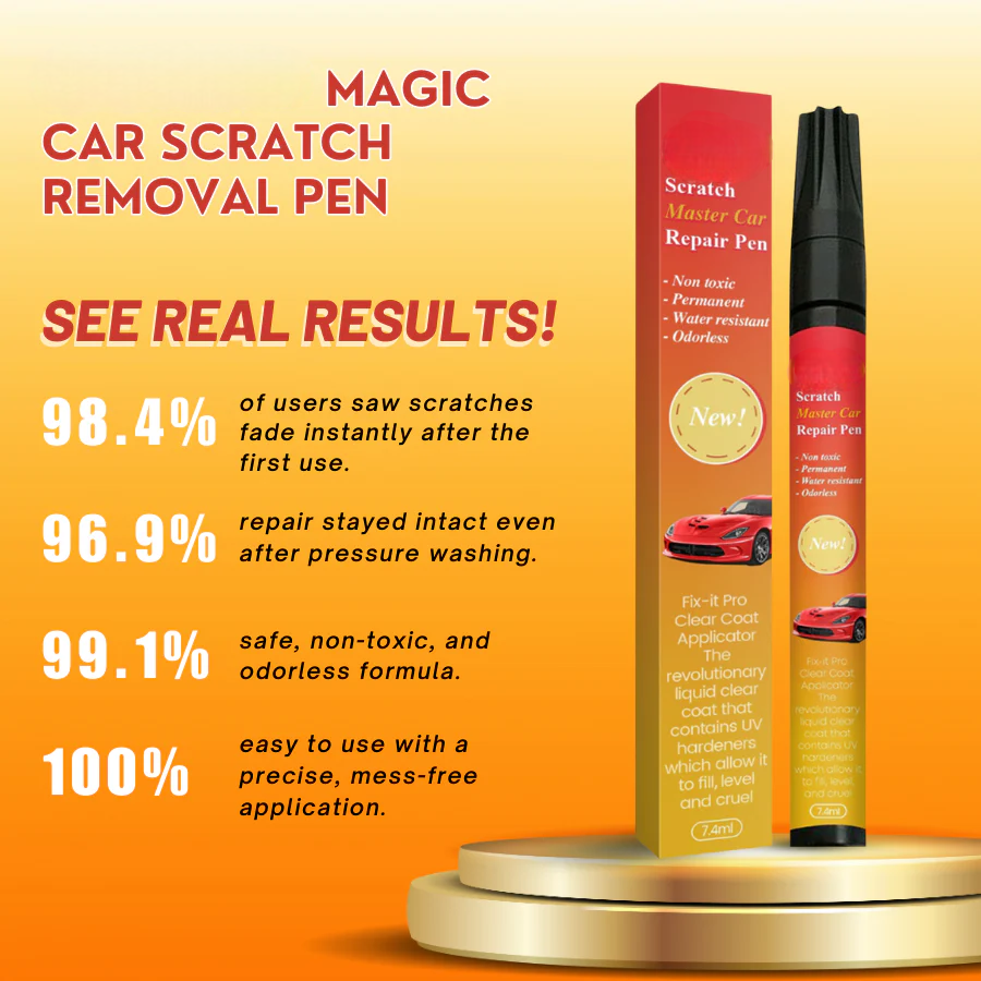 Magic Car Scratch Removal Pen uses advanced polymer technology that fuses with your car’s original paint. The liquid formula fills in scratches, blending seamlessly to restore your vehicle’s pristine look. Its waterproof and UV-resistant properties ensure long-lasting results without fading or peeling.