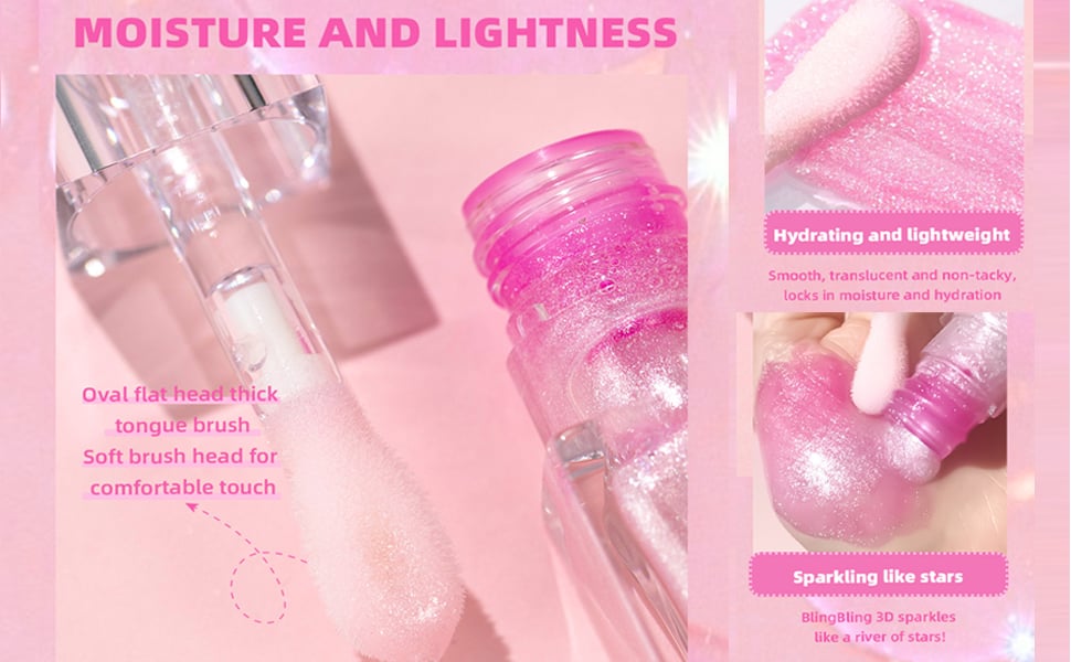 The lip oil use a non-sticky formula, its texture is light, non-stick cup and non-greasy, creates naturally clear lips.
