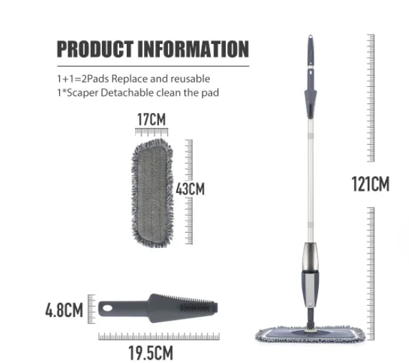 Saves Time and Effort: The integrated spray feature eliminates the need for buckets and wringing, reducing cleaning time.