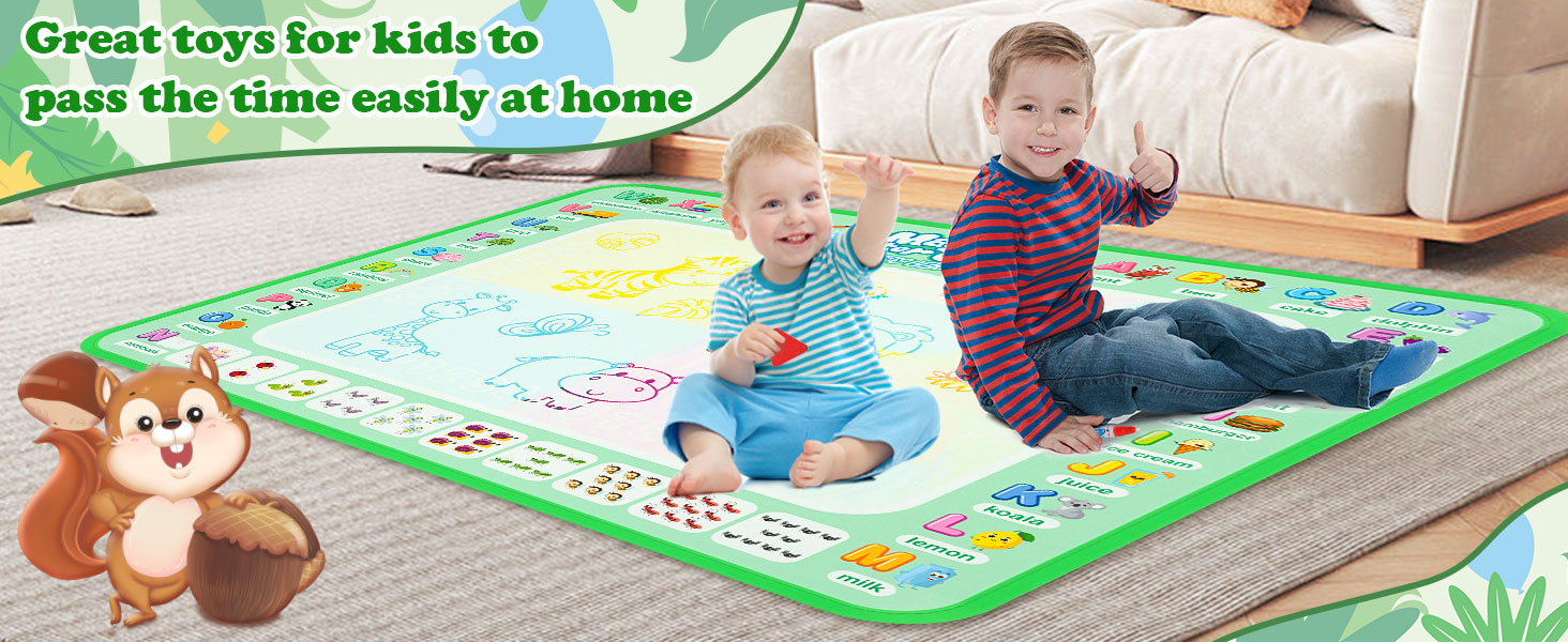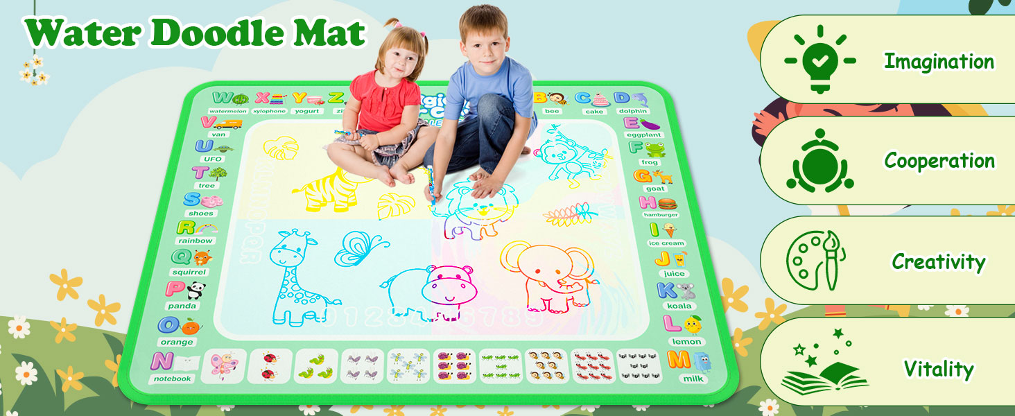 - 【Wonderful Gift for kids】Kids can doodle with water and watch their creations magically disappear on this amazing mat. This toy helps toddlers develop their brain, fine motor skills, social skills, early literacy, and color and shape recognition. As they play with their friends, they also learn to communicate and cooperate. This mat is a perfect educational gift for boys and girls aged 2 to 6 and above.