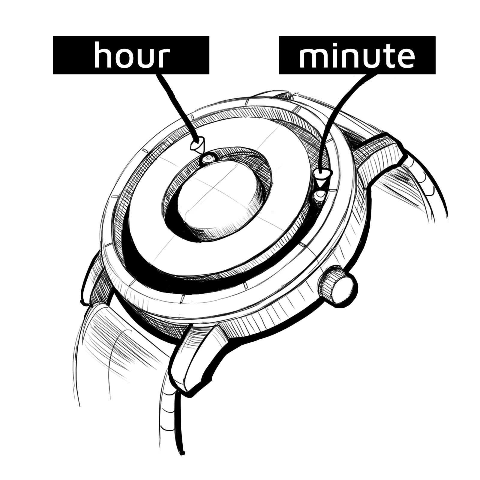 The small balls levitate magnetically above the dial to indicate the time like hands in ordinary watch dial.In this design case, the ball will slide randomly because of the watch shaking. But when the watch is not shaking, the ball will display the current time due to the magnetic force.