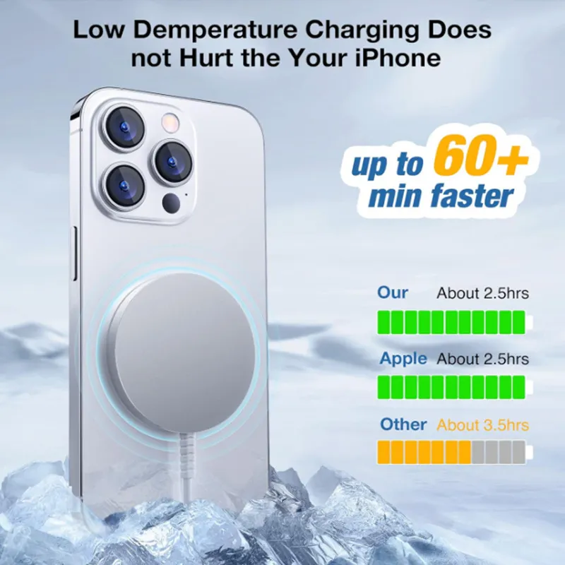 Equipped with a built-in magnetic system, this charger securely aligns with your phone for precise charging every time. The magnetic attachment ensures a stable connection, minimizing energy loss and allowing hands-free usage while your device charges.