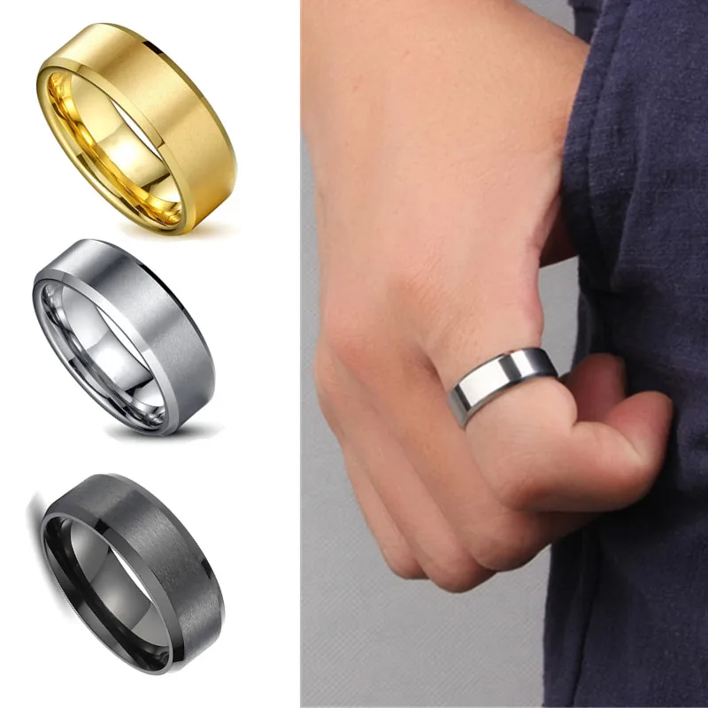 Main Stone Color: Gold, Ring Size: 9 - JUCHAO Classic Ring Men Titanium Black Men Jewelry Wedding Bands Boyfriend Gift Dropshipping