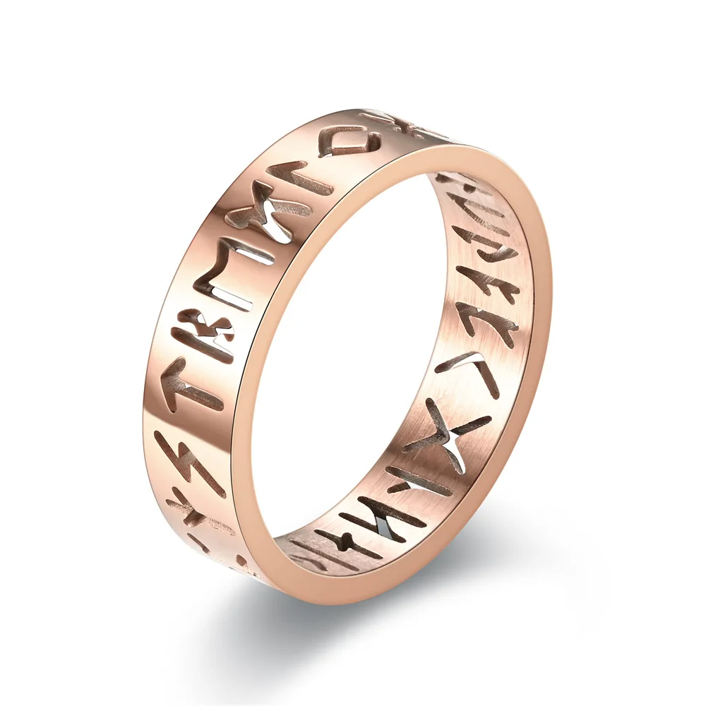 Main Stone Color: Hot Pink, Ring Size: 4 - 2023 New Stainless Steel Hollow Out Ring for Men Women Fashion Hollow Rune Design Finger Anillo Antiestres Anxiety Rings
