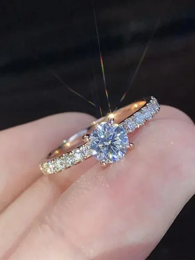 Main Stone Color: WHITE, Ring Size: 8 - Huitan Classic 4 Claws Design Round Zirconia Women Wedding Engagement Rings 3 Colors Available Low-key Bridal Jewelry Hot Sale