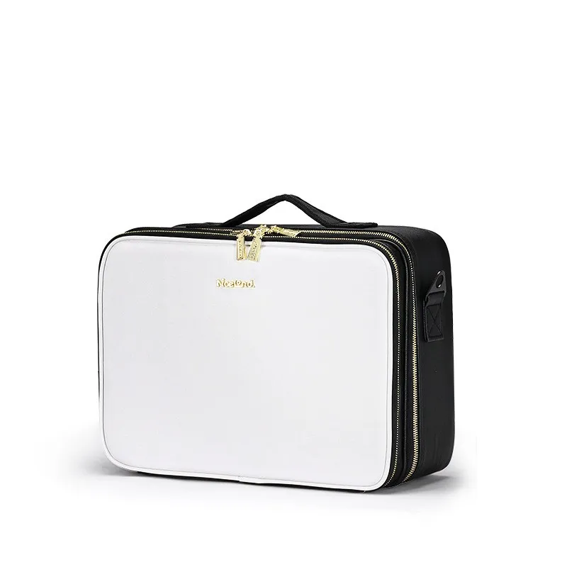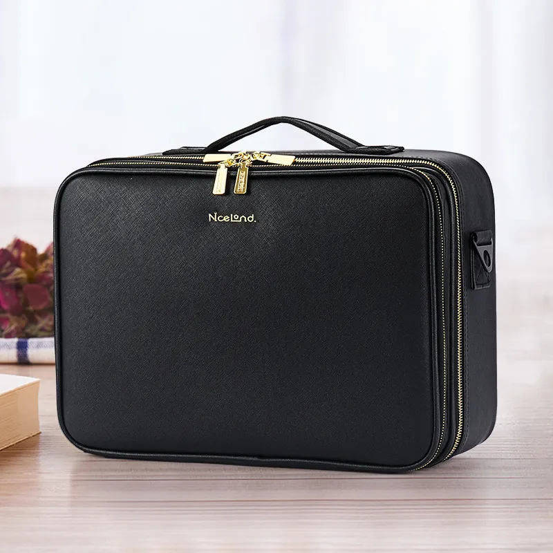 Multiple Compartments: Features various pockets and compartments to keep your makeup, skincare, and beauty tools organised, preventing damage and ensuring easy access.