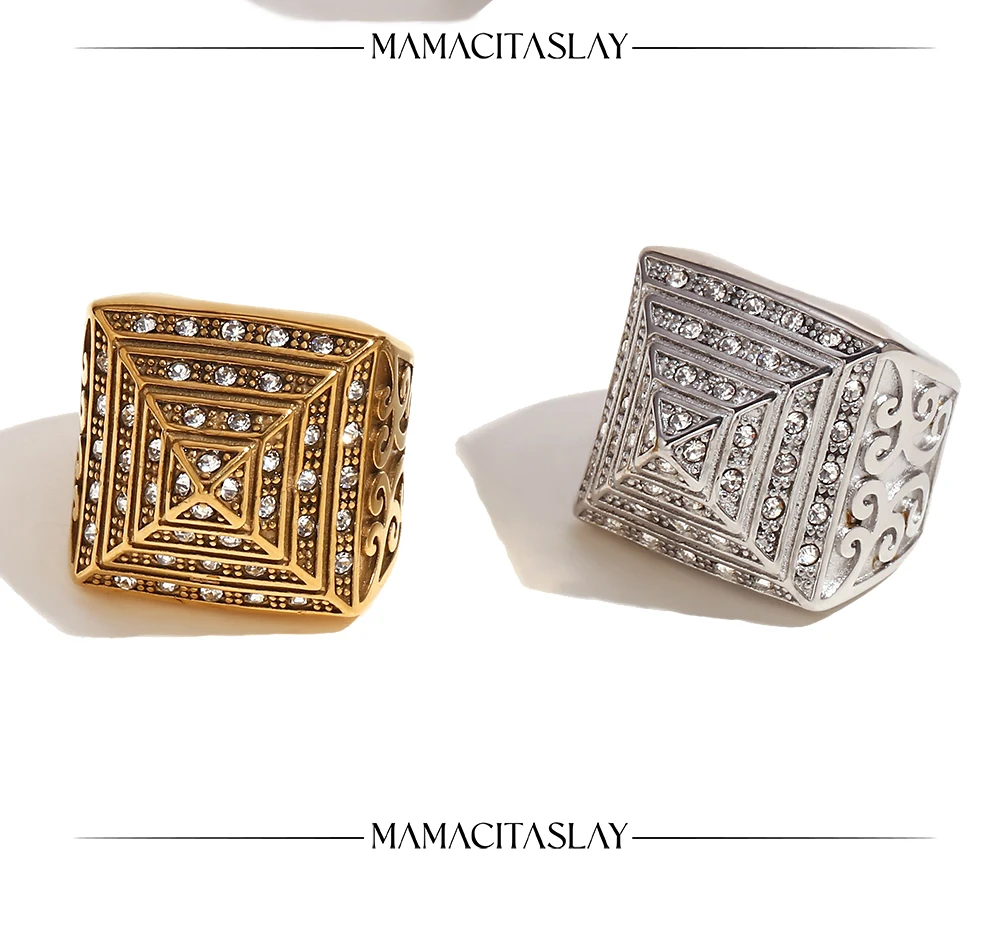 The MamacitaSlay New In Vintage Four Story Pyramid Vine Waterproof Men Ring is a statement piece that fuses classic symbolism with modern durability. Perfect for New Zealand men seeking luxury, style, and lasting quality, this ring is a powerful accessory that complements any look. Invest in this unique stainless steel ring to express your individuality and sophistication with confidence.