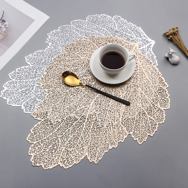 Manteles individuales europeos y americanos con hojas huecas, aislamiento y PVC antideslizante.