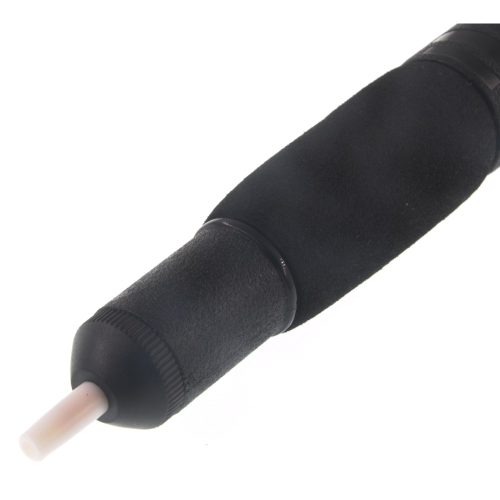 The device features an ergonomic grip that reduces hand fatigue, allowing for prolonged use during detailed soldering projects.