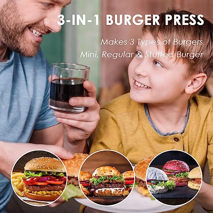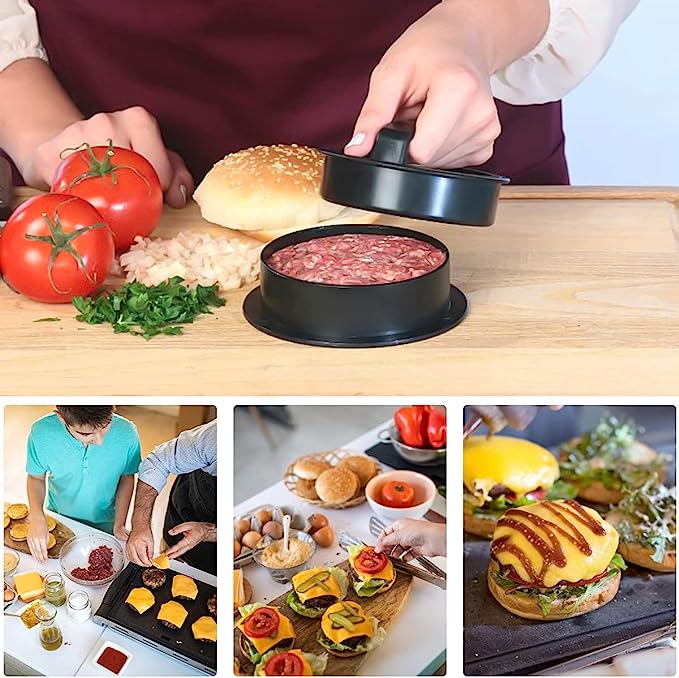 🎁【Gran opción de regalo para los amantes de las hamburguesas】🎁 -- Esta prensa para hamburguesas tres en uno es una herramienta de cocina muy útil, que puede Prepare fácilmente deliciosas hamburguesas, parrilladas, etc. en cualquier ocasión. Es el regalo ideal para los amantes de las hamburguesas y los maestros de la cocina casera.