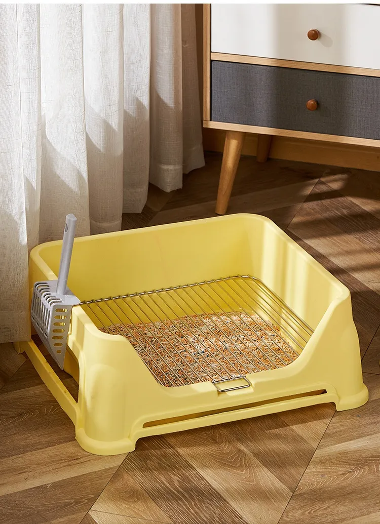 Para mayor comodidad, el Marco grande de malla de acero inoxidable para baño de perros se puede usar en combinación con almohadillas para orinar, césped artificial u otros productos de entrenamiento para ir al baño para crear un área completa para que su perro haga sus necesidades. Estos accesorios adicionales facilitan mantener el área del baño de su perro limpia y cómoda.